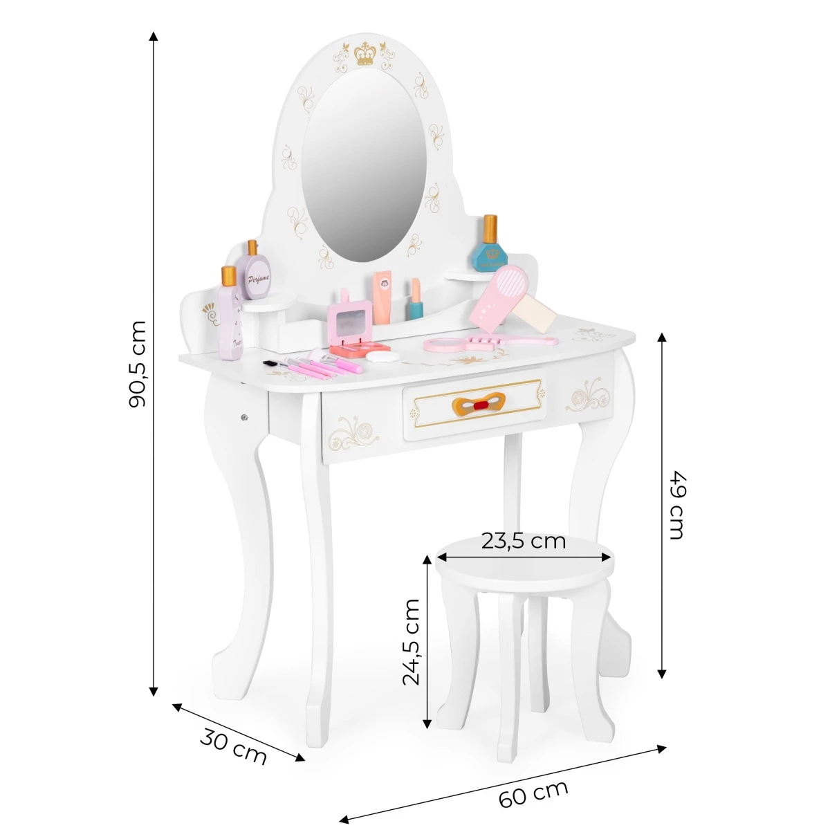 Veľká detská toaletka so zrkadlom a doplnkami Táto krásna drevená toaletka je navrhnutá pre malé slečny od 3 rokov.