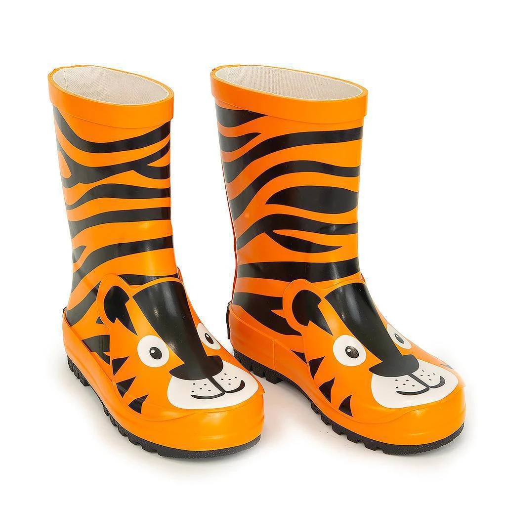 Detské gumové čižmy Pidilidi s výraznou tigrou potlačou sú ideálnou voľbou do daždivého počasia, na ihrisko aj na cestu do škôlky. Sú vyrobené z kvalitnej gumy, ktorá zaisťuje pevnosť, vysokú odolnosť proti vlhkosti a zároveň pohodlné nosenie pri chôdzi. Ľahká konštrukcia umožňuje ľahké obúvanie a moderný, hravý dizajn v oranžovej farbe si deti rýchlo obľúbia.