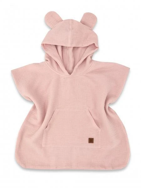 Detské mušelínové pončo lux s kapucňou Teddy rýchloschnúce púdrovo ružové