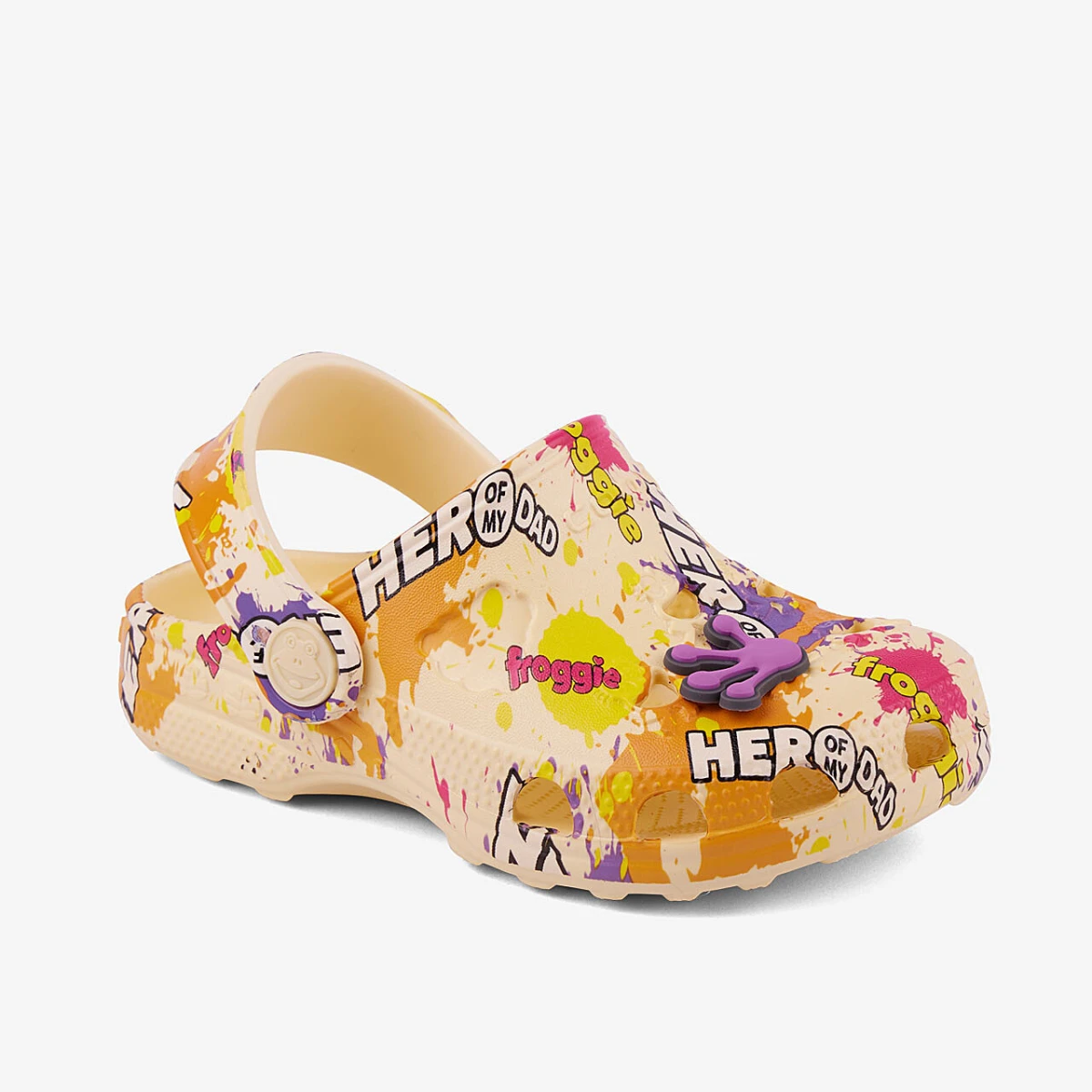 Detské nazúvaky clogsy žlté Hero + amulet Little Frog Coqui