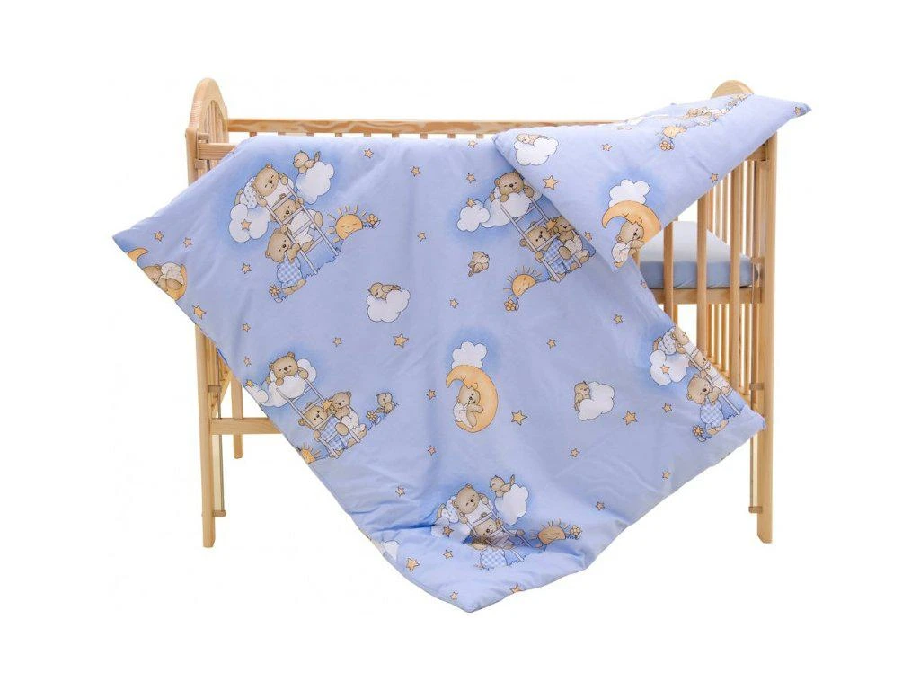 Dvojdielna súprava obliečok Macko na mráčiku obsahuje 1x obliečky na perinku o rozmere 120x90 cm a 1x obliečky na vankúš o rozmere 60x40 cm.
