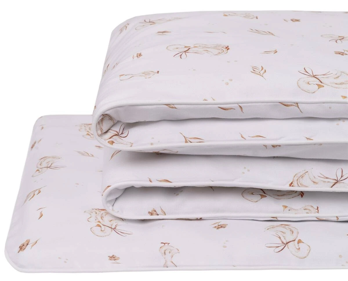 Saténová bavlna je materiál cenený pre svoju odolnosť, kvalitu a komfort pri používaní. Zaisťuje dieťaťu pohodlný a pokojný spánok aj príjemné zababušenie, ktoré prispieva k pocitu bezpečia. Krásne vzory robia z obliečok nielen praktický, ale aj dekoratívny prvok detskej izbičky. Tento set je tiež skvelým tipom na darček k narodeniu bábätka alebo na baby shower.