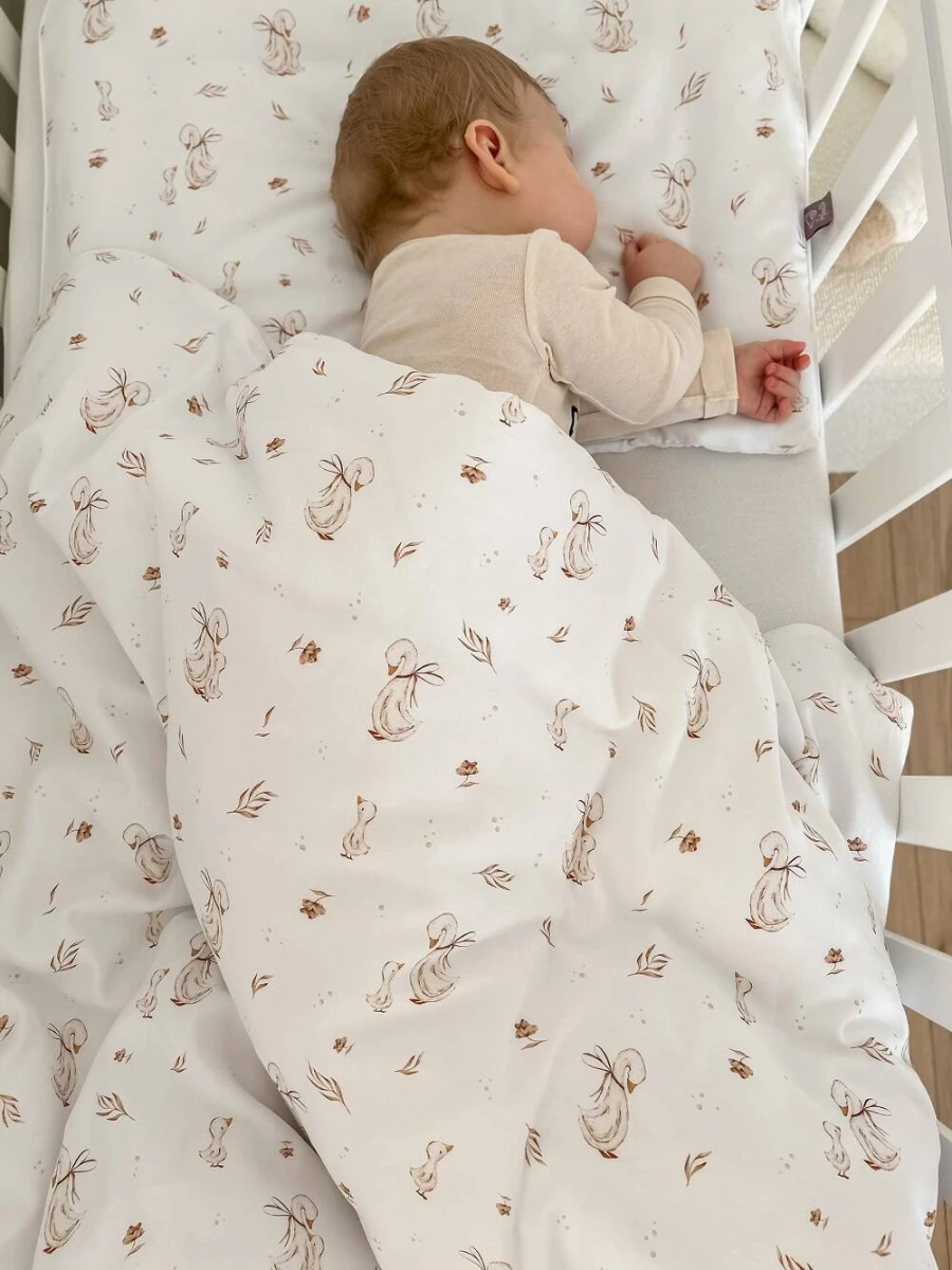 Detské obliečky do postieľky 100 x 135 cm bavlnený satén Husi Infantilo
