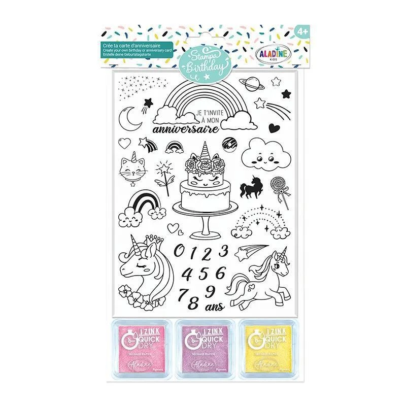Detské pečiatky Aladine Stampo Birthday, 36 ks - Jednorožce