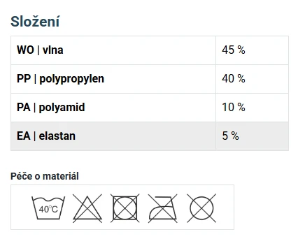 Slabé ponožky sú aj tak teplé a hrejivé vďaka prírodnému materiálu vlne merino. Ďalšou výhodou je antibakteriálne vlastnosti vďaka materiálu silproX® s iónmi striebra. Obmedzuje tvorbu baktérií a plesní, tie sú v ponožkách prirodzene zničené a nedochádza potom k tvorbe zápachu. Sú odolné proti opotrebovaniu, majú vystuženú špičku a pätu. Studené nohy už vaše milé deti mať rozhodne nebudú, ponožky majú teplotnú triedu B vhodnú do teplôt od -5°C do +20°C.
