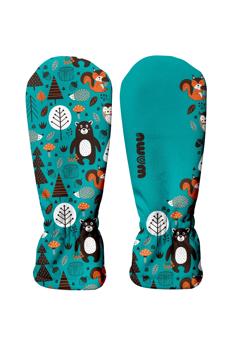 Detské softshellové rukavice Medvede Tyrkysová