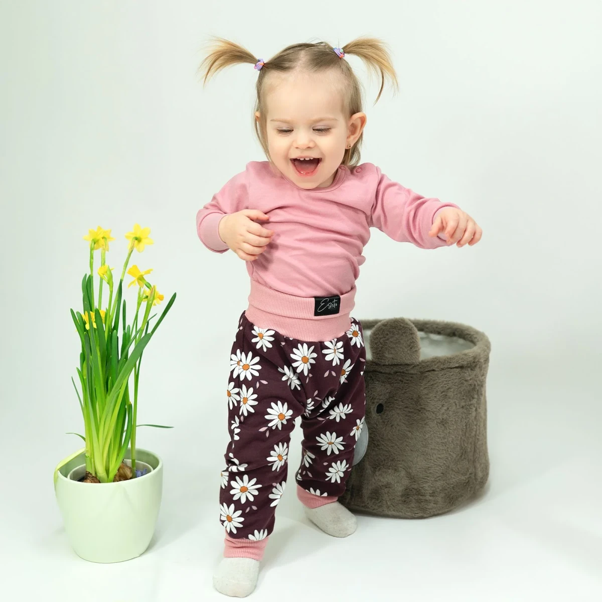 Predstavujeme vám detské tepláky baggy s vysokým pásom Daisy. Tieto tepláky nie sú len obyčajným kúskom oblečenia, ale skutočným pohodlím, kvality a štýlu.