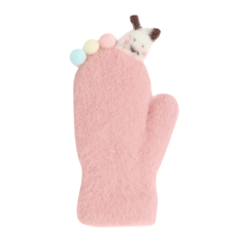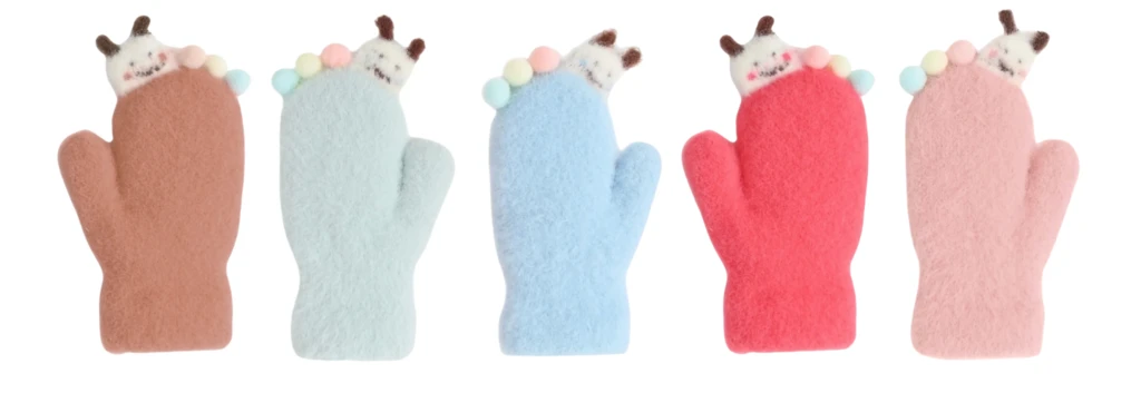 Detské zimné huňaté palčiaky s lamou a brmbolcami 2 - 3 roky