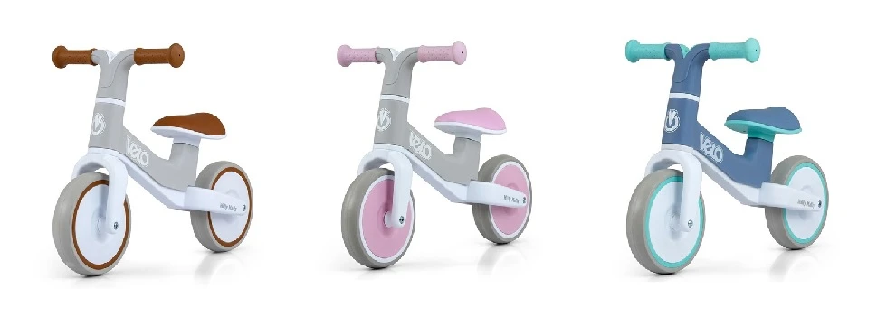 Detský balančný bicykel Milly Mally Velo - moderný dizajn v kombinácii s originálnymi vzormi a farbami kolies vynikajú medzi dostupnými na trhu. Ergonomický tvar zaisťuje bezkonkurenčné pohodlie pri jazde a správne držanie tela. 7" kolesá vyrobené pomocou najnovšej technológie EVA dobre absorbujú nárazy, čo zvyšuje komfort jazdy. Sedák – pohodlný, mäkký a profilovaný.