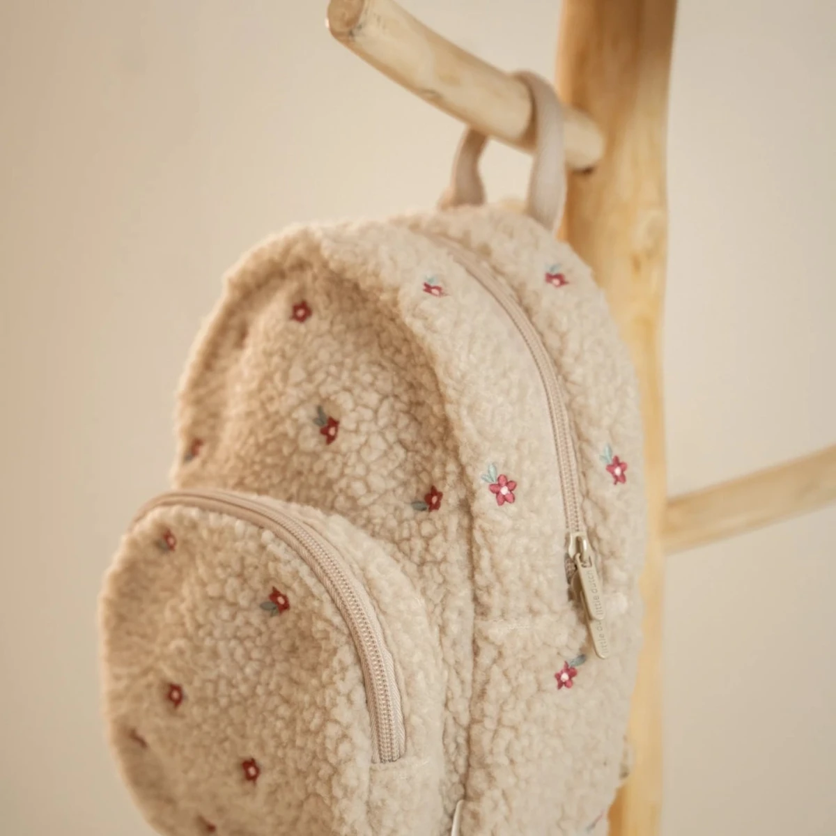 Roztomilý detský batôžtek z mäkkého plyšového materiálu s kvetinovou výšivkou je ideálnym doplnkom na výlety do prírody aj prechádzky mestom.