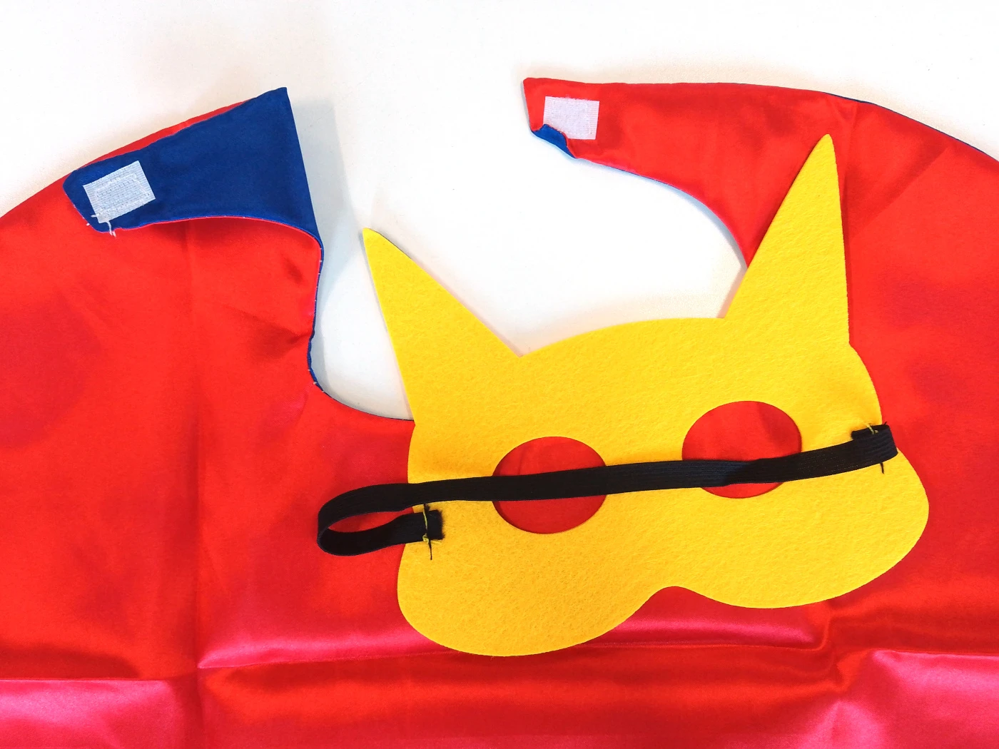 Plášť je vyrobený z mäkkého, ľahkého saténu s lesklým povrchom, ktorý vyzerá skvele a zároveň je pohodlný na nosenie. Vnútorná strana má kontrastnú modrú farbu, ktorá pri pohybe dodáva kostýmu atraktívny vzhľad. Vďaka zapínaniu na suchý zips si plášť ľahko oblečie aj malé dieťa bez pomoci dospelých.