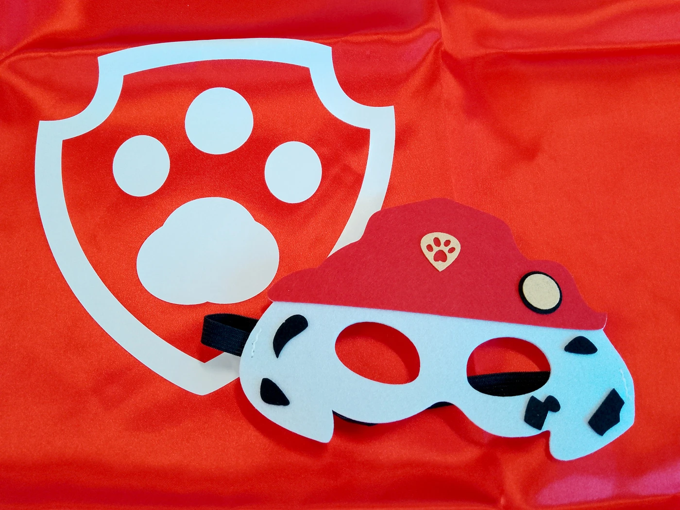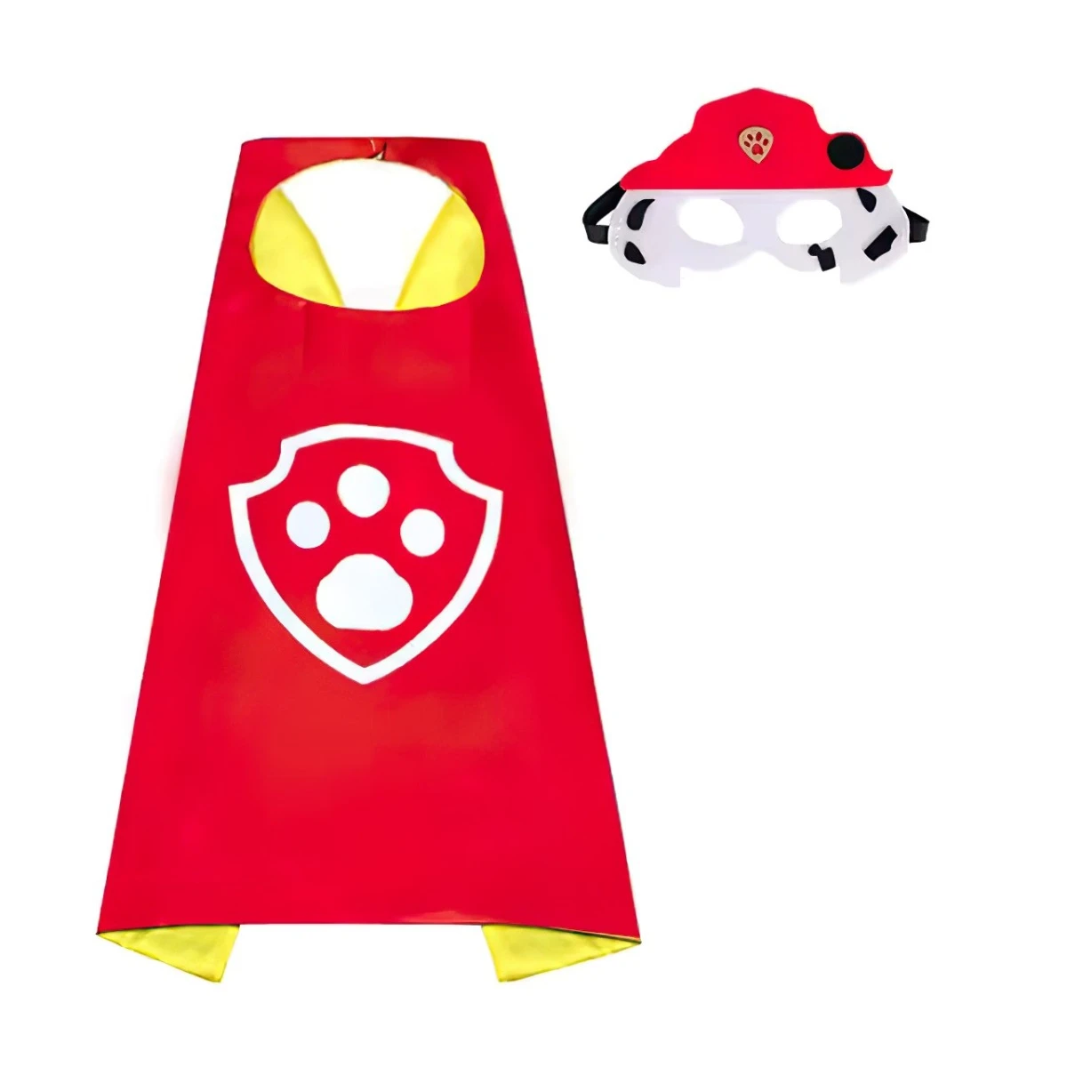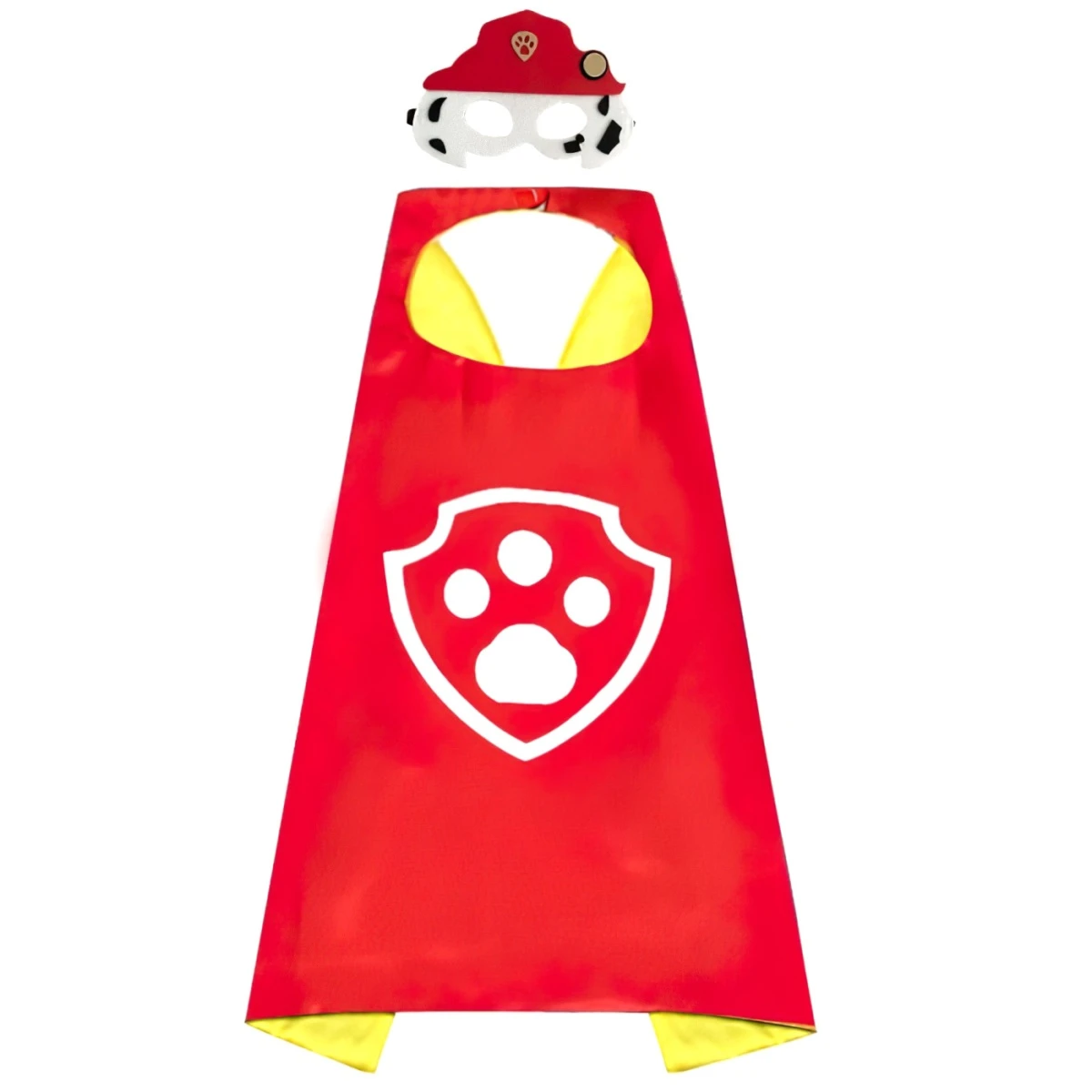 Súprava obsahuje červený plášť s logom Tlapkové patroly a štýlovú masku pripomínajúcu hasičskú čiapku a biele chĺpky Marshalla – dalmatína, ktorý je vždy pripravený pomáhať.