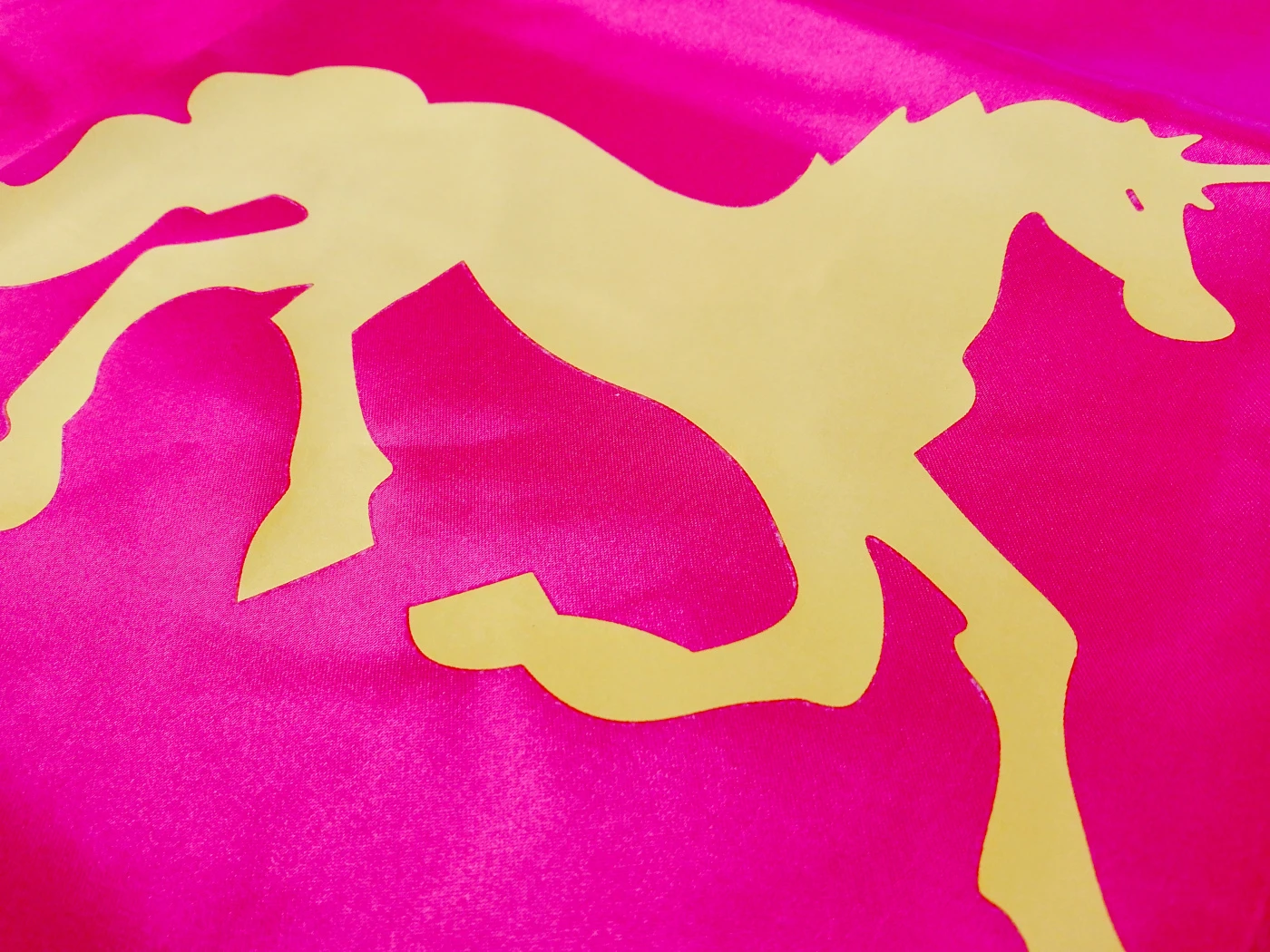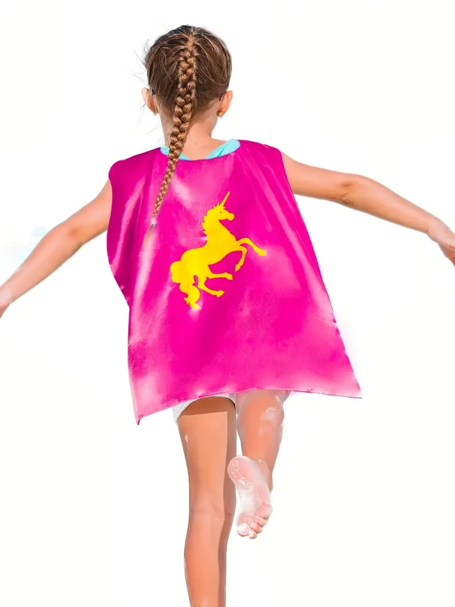 Plášť v sýto ružovej farbe zdobí veľký zlatý jednorožec, ktorý pôsobí elegantne a hravo zároveň. Súčasťou balenia je aj maska v rovnakej farebnej kombinácii, vďaka ktorej sa dieťa ľahko prevtelí do tajomnej rozprávkovej bytosti.