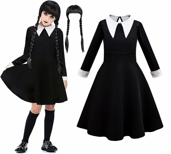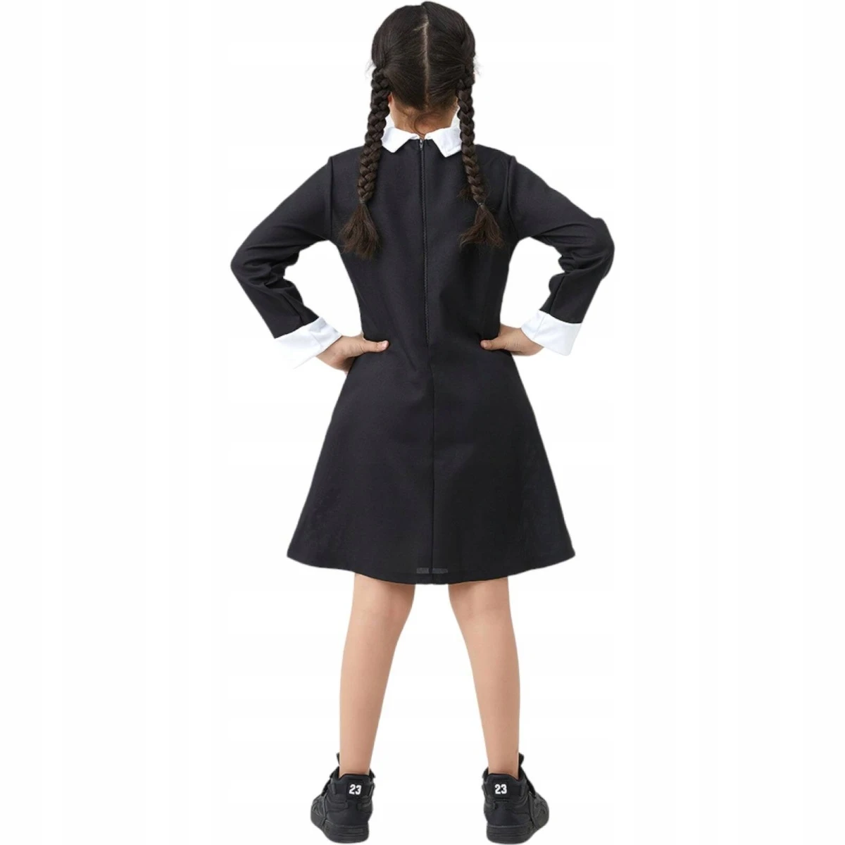 Tento kostým je skvelou voľbou pre detské karnevaly, Halloween, alebo akúkoľvek inú udalosť. Kostým je jednoduchý, ľahký, v klasickom čierno-bielom prevedení s golierom. Vďaka kvalitnému spracovaniu a pohodlným materiálom bude vaše dieťa v tomto kostýme vyzerať a cítiť sa skvele. Za originálnu premenu do jednej z najznámejších postáv z kultovej Adamsovej rodiny - Wednesday, iste dieťa získa veľa chvály.