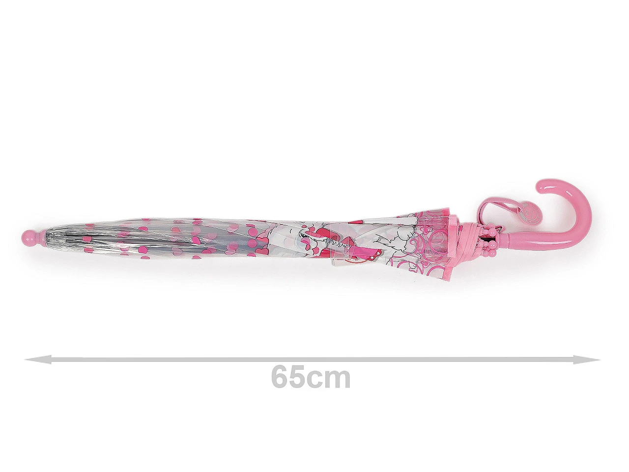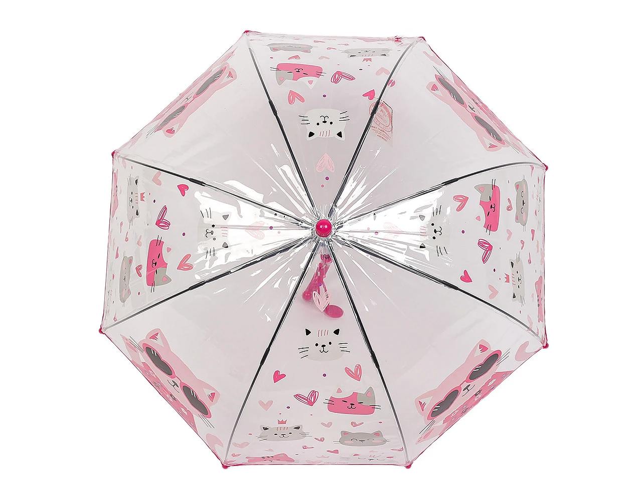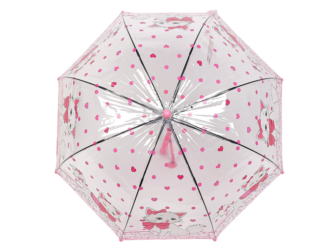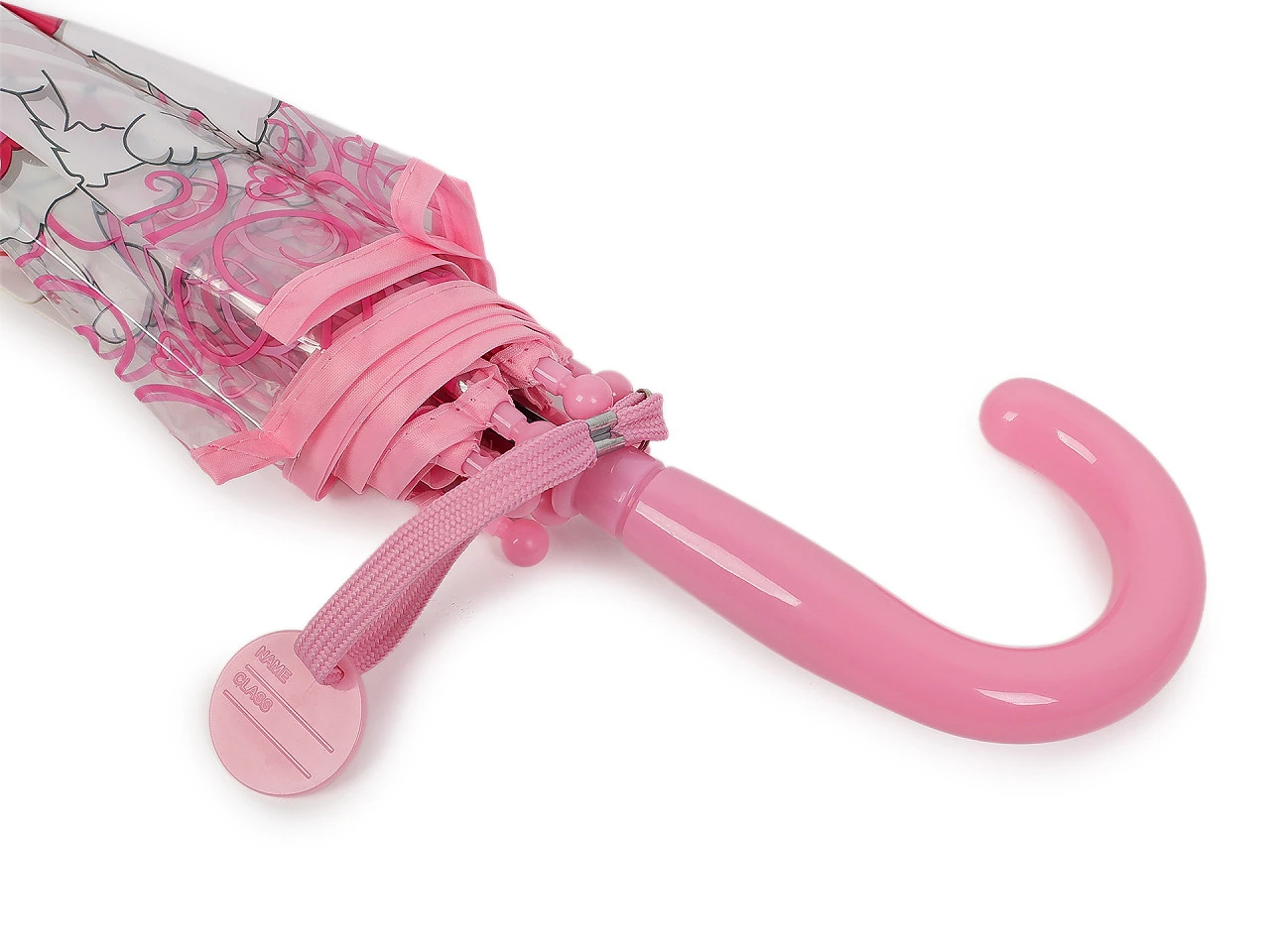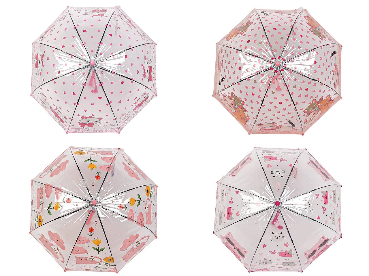 Priehľadný materiál nielen že zaisťuje skvelú viditeľnosť, ale tiež dodáva veselý a hravý vzhľad, ktorý si vaše dieťa okamžite obľúbi. Vďaka hlbokej konštrukcii poskytuje zvýšenú ochranu proti vetru a dažďu, zatiaľ čo vystreľovací mechanizmus umožňuje ľahké a rýchle otvorenie. Dáždnik má klasickú tyč zakončenú pevnou rukoväťou s visačkou, na ktorú môžete napísať meno dieťaťa. Konštrukcia dáždnika je z pružných lamiel a tvorí osem polí.