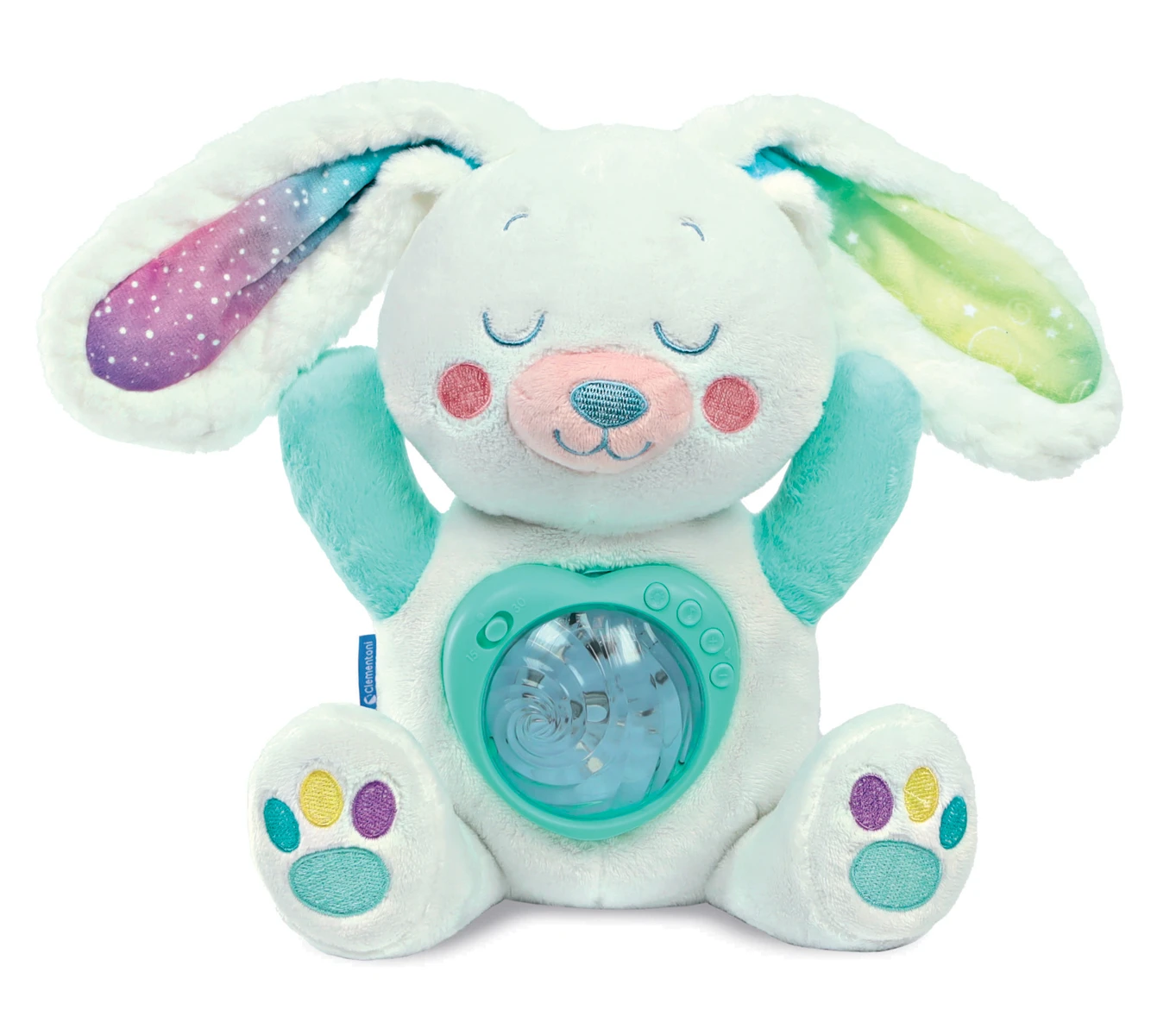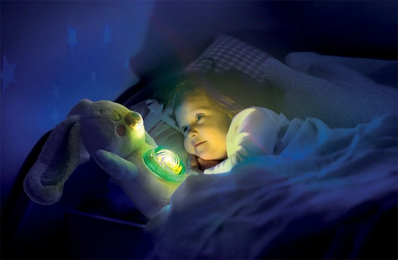 Vstavaný elektronický modul ponúka až 10 rôznych farieb svetla, ktoré je možné podľa potreby nastaviť. Okrem toho roztomilý zajačik hrá klasickú hudbu, uspávanky, prírodné zvuky a biely šum po dobu až 20 minút. Hlasitosť a časovač je možné ľahko nastaviť.