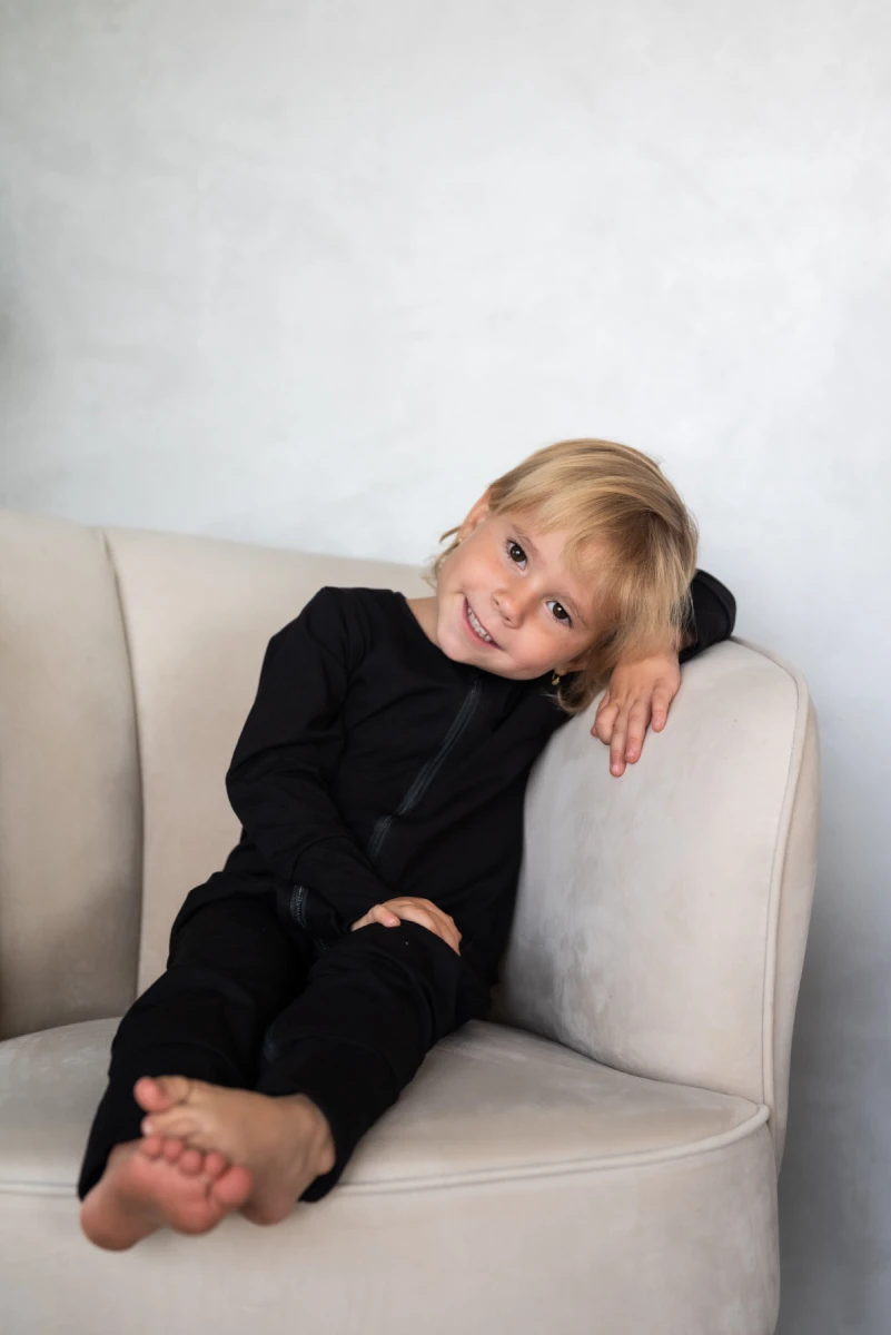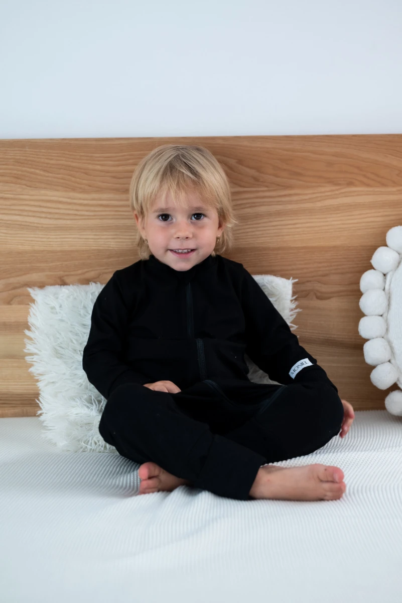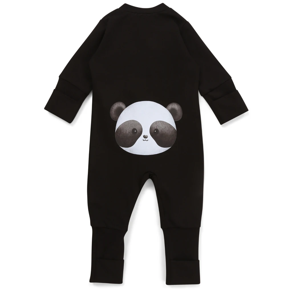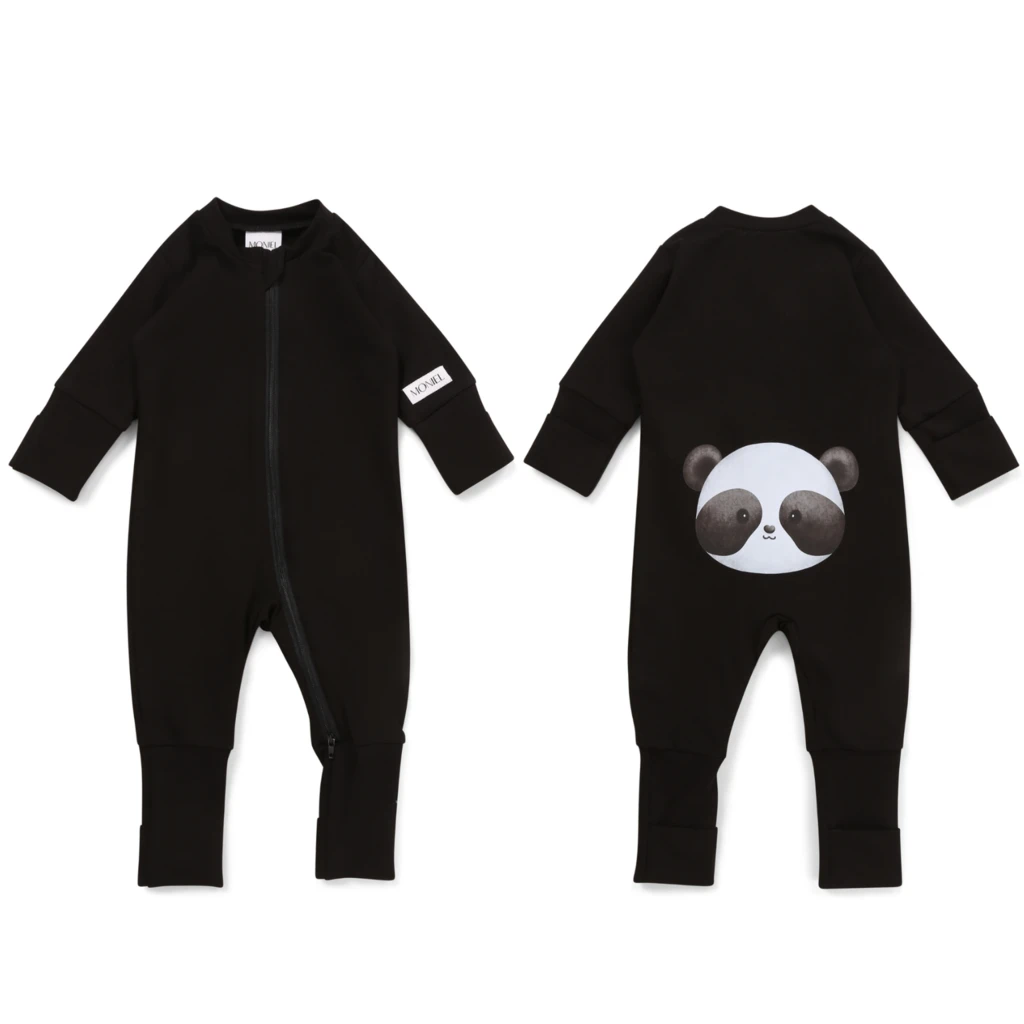 Rastúci detský overal na zips Moniel Overal Panda All Black čierna je inovatívny a jedinečný produkt svojho druhu. Overal sa dokonale prispôsobí vášmu dieťatku po celý rok.