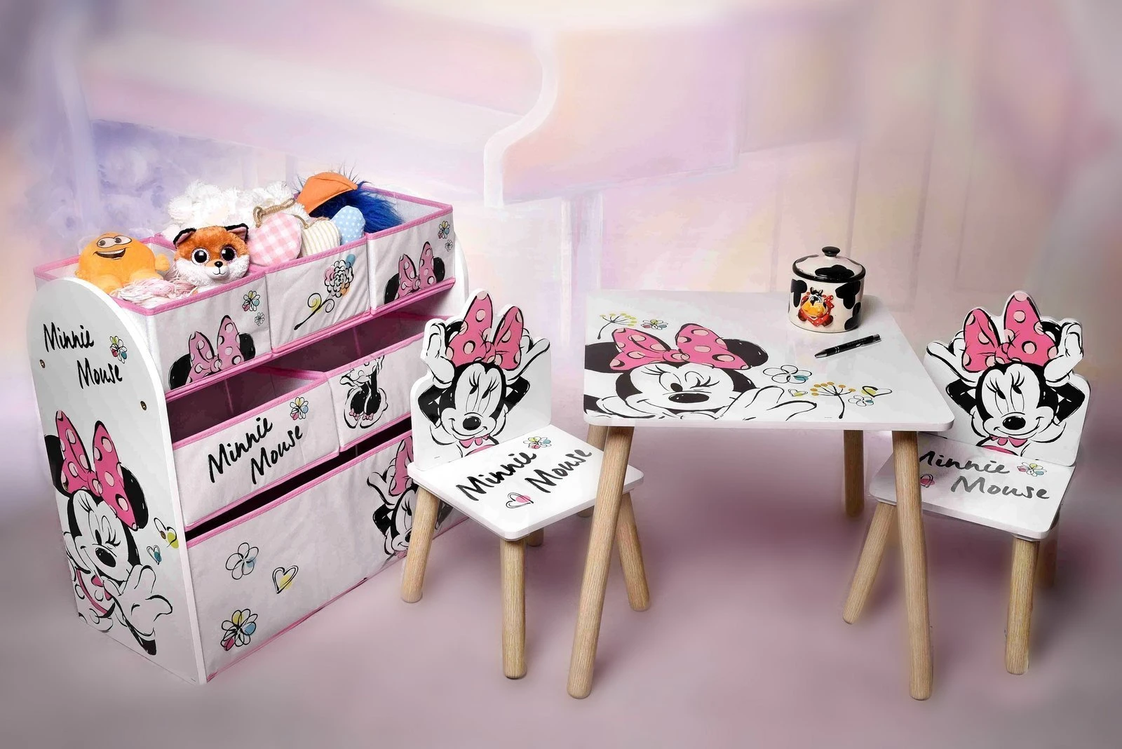 Nádherný detský stôl so stoličkami s roztomilou animovanou postavičkou Myškou Minnie z dielne Walt Disney poteší všetky deti.