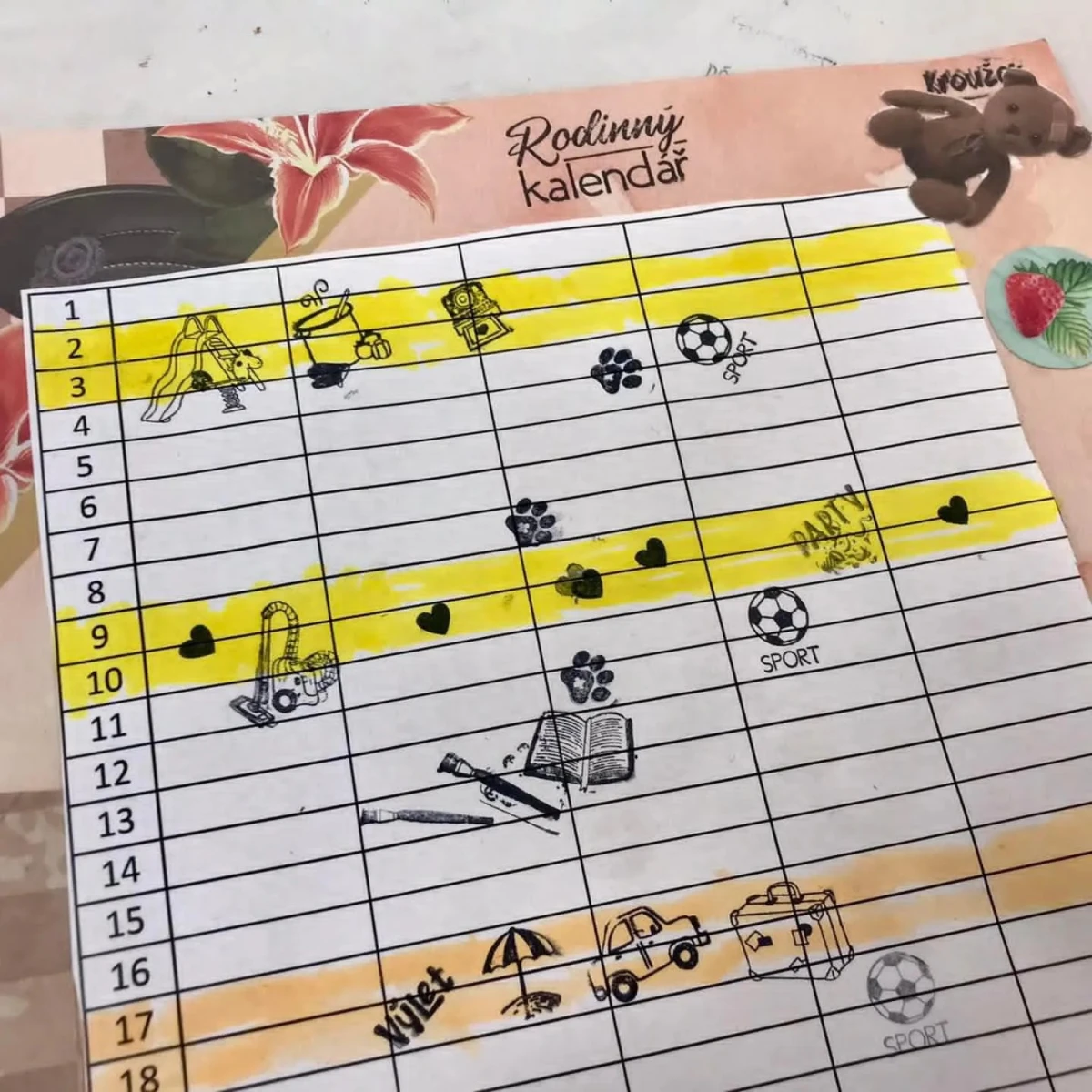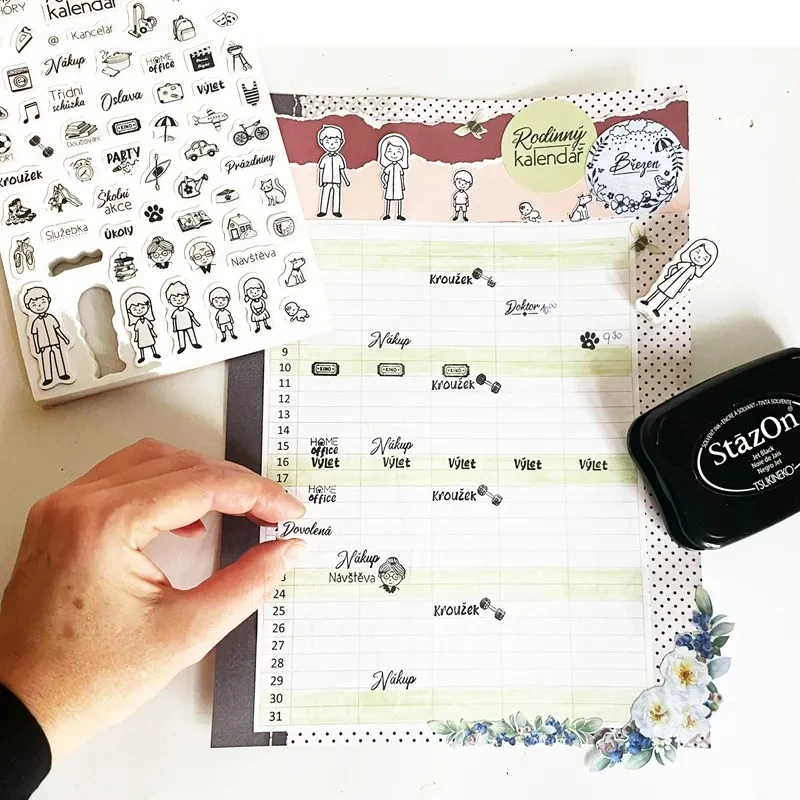 Diárové pečiatky Stampo Bullet Journal 67 ks - Rodinný kalendár Aladine