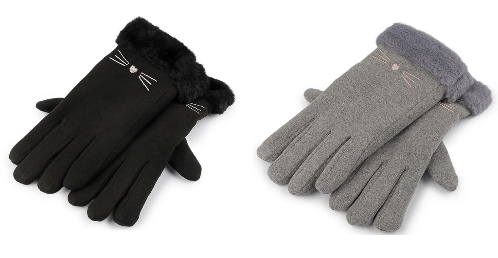 Elegantné dievčenské rukavice zdobí výšivka ňufáku a kožušinový lem. Rukavice sú jemne pružné.