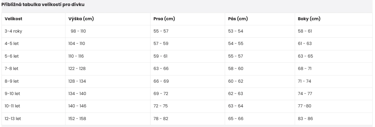 | Veľkosť | 122 / 128 / 134 / 140 / 146 / 152 / 158 / 164 |