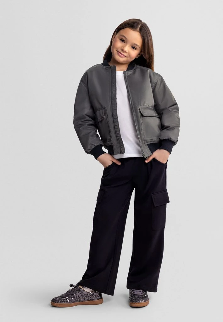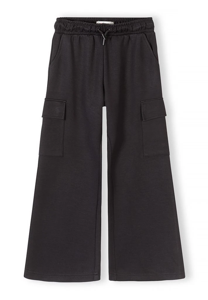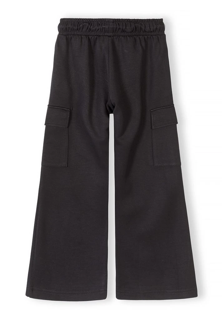 Čierne nohavice s modernými širokými nohavicami a praktickými cargo vreckami spájajú trendy vzhľad s funkčnosťou, ktorú ocení každá aktívna slečna. Hodí sa do školy, na prechádzky aj víkendové výlety .