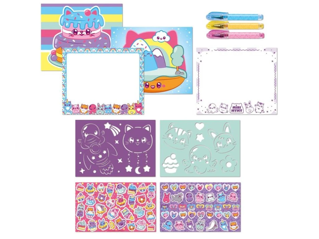 Obsahuje: 2 archy samolepiek, 2 archy šablón, 3 herné scény, 20 kresliacich stránok, 3 gélové perá.