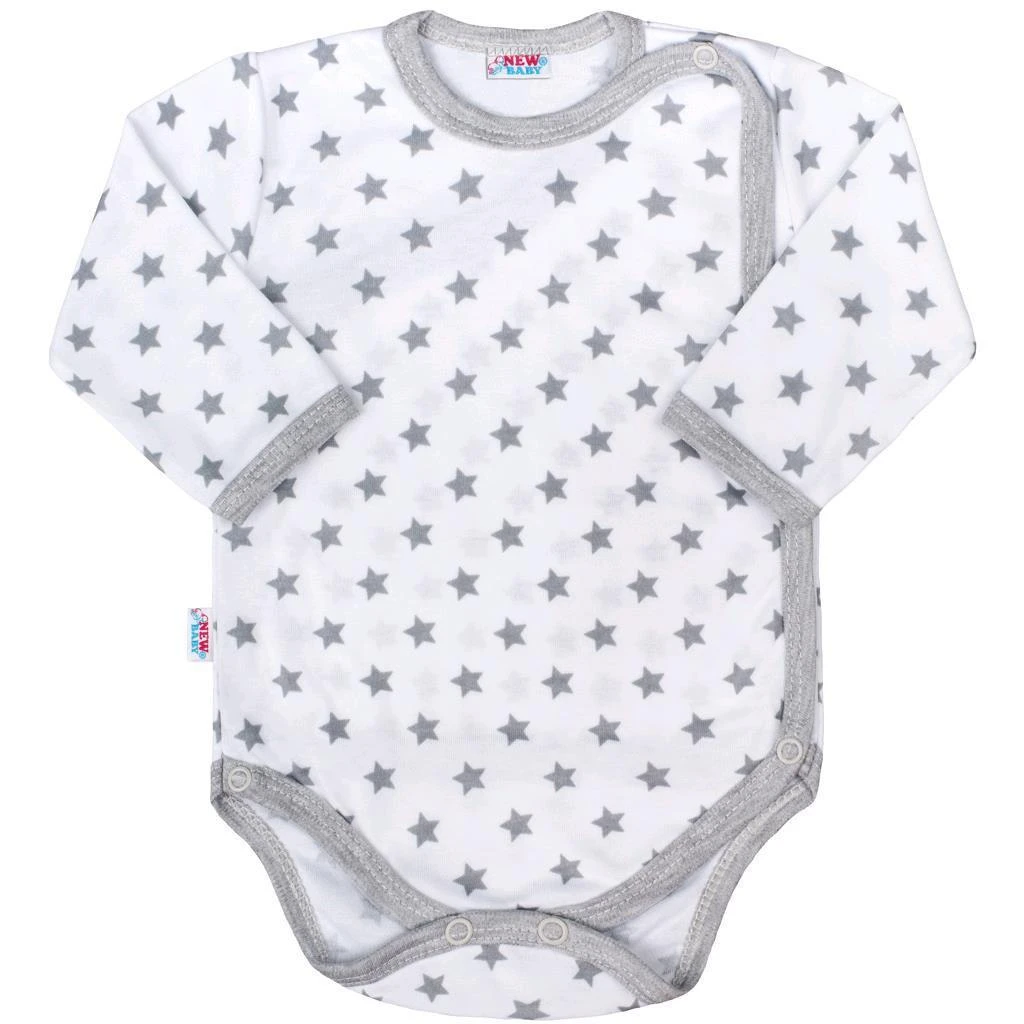 Dojčenské celorozopínacie body New Baby Classic II sivé s hviezdičkami