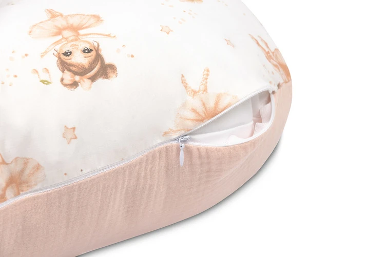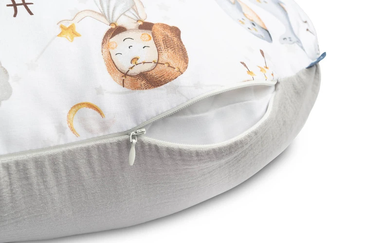 Tento vankúš je vyrobený z vysoko kvalitného mušelínu a bavlny, čo zaručuje jemnosť a priedušnosť. Výplň tvoria silikónové guličky, ktoré sa prispôsobia tvaru tela a zaistia maximálne pohodlie. Navyše je vankúš elegantný a praktický doplnok do každej domácnosti s bábätkom.