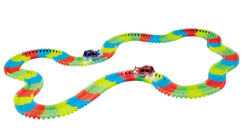 Táto svietiaca závodná dráha je ideálnou zábavou pre deti, ktoré milujú rýchle autá a napínavé závody!