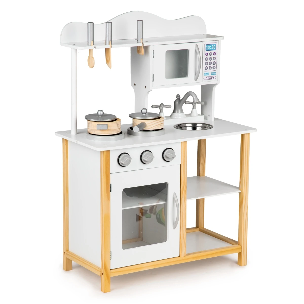 Drevená detská kuchynka s rúrou a príslušenstvom