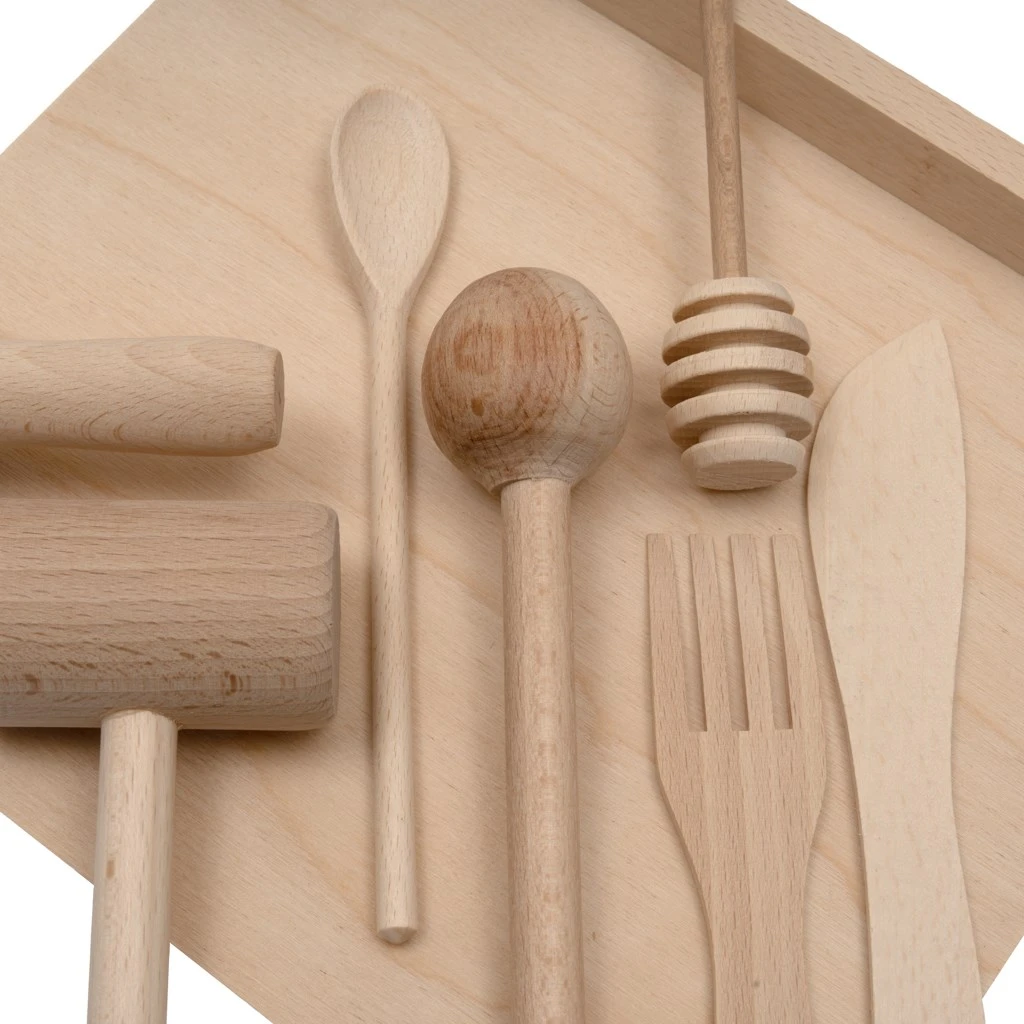 Ideálny darček pre malých pomocníkov v kuchyni. Bez plastu, bez chémie - len čistá radosť a vôňa dreva. Kuchynské doplnky sú vyrobené v „EKO“ verzii zo surového dreva.