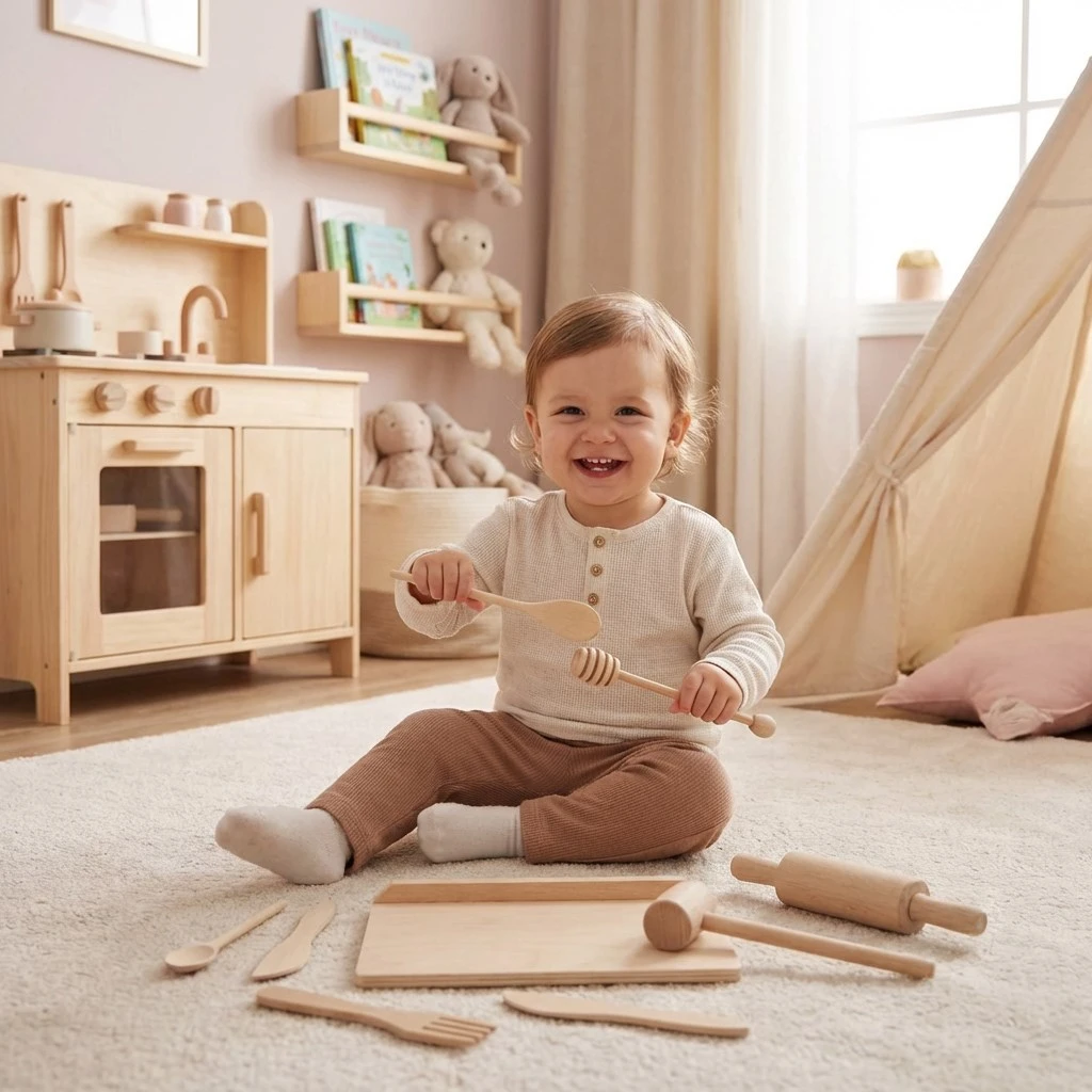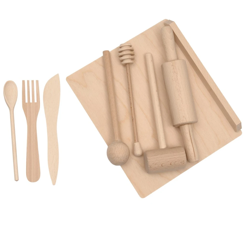 Deti si zamilujú varenie „na nečisto“ – môžu váľať cesto, plastelínu, miešať medíček alebo pripravovať maslové dobroty. Každý kúsok sady je navrhnutý tak, aby podporoval kreatívnu hru, rozvíjal jemnú motoriku a prinášal radosť z hrania na kuchára či kuchárku.