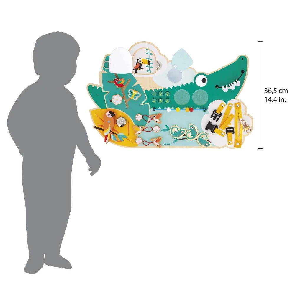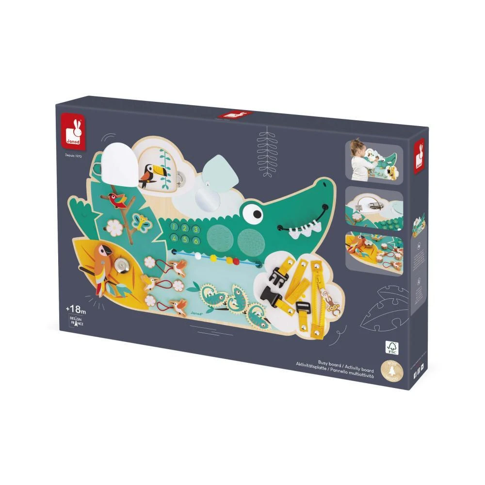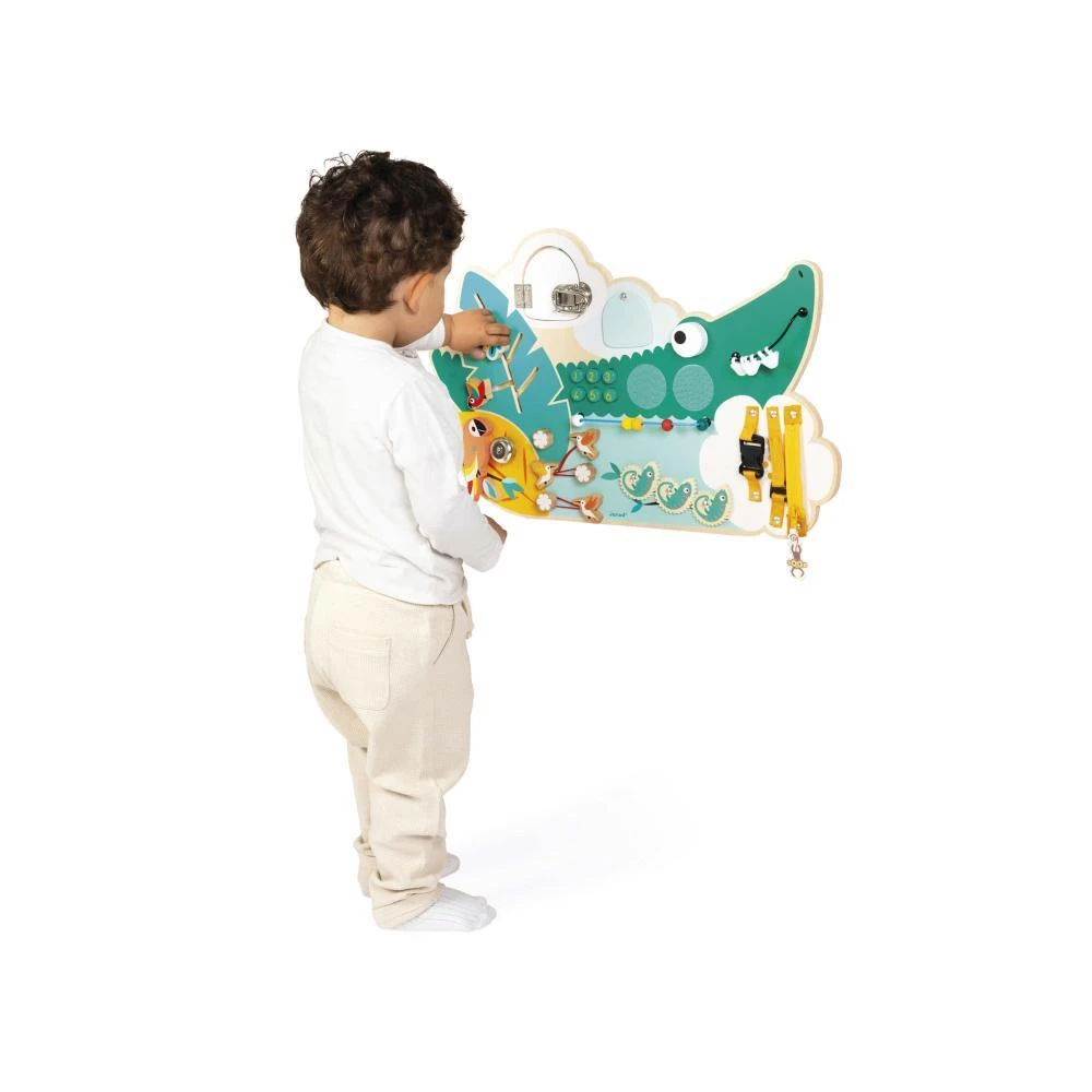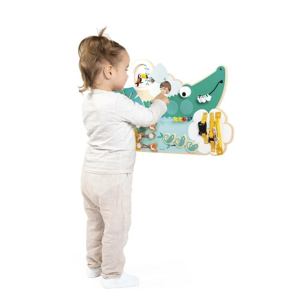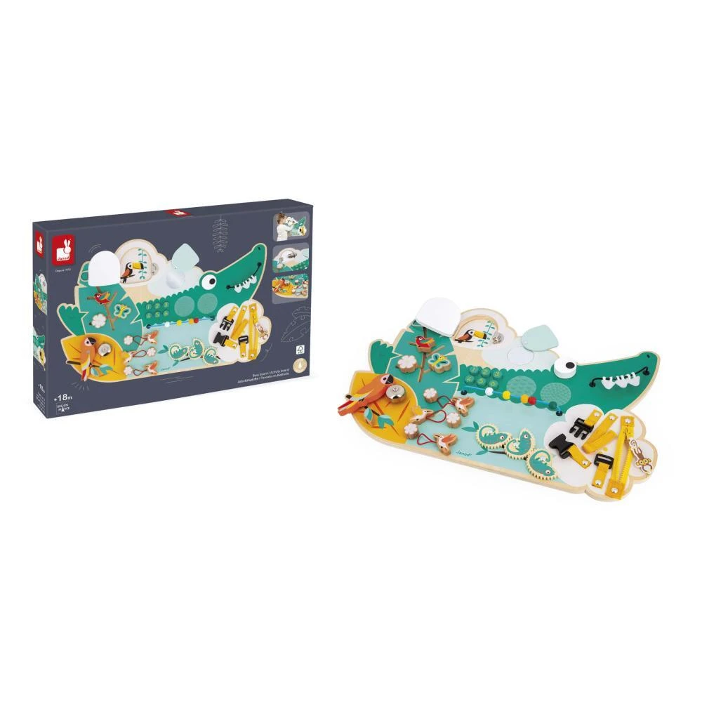 Drevená motorická doska s aktivitami Krokodíl Tropik Janod