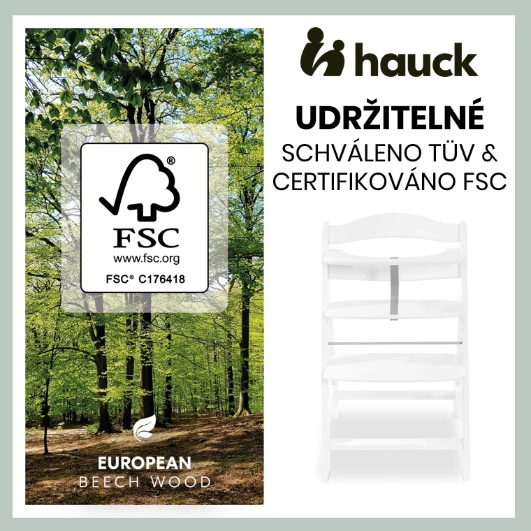 Udržateľný životný štýl // Naša stolička ALPHA+ je pravý prírodný produkt z dorastajúceho európskeho bukového dreva. Hauck tak prispieva k ochrane životného prostredia a už dnes pomýšľa na budúcu generáciu rodičov.