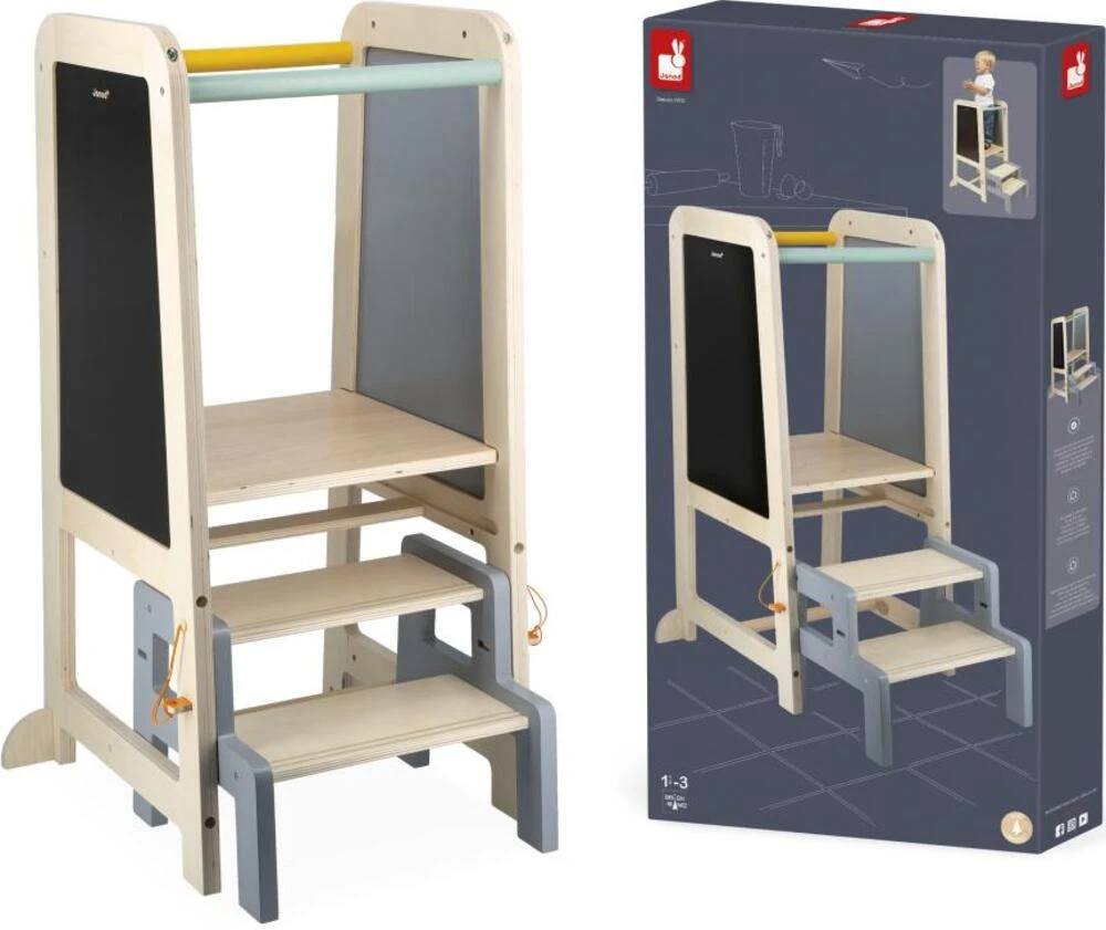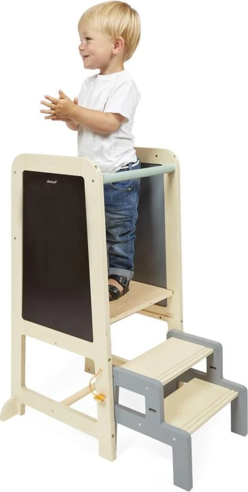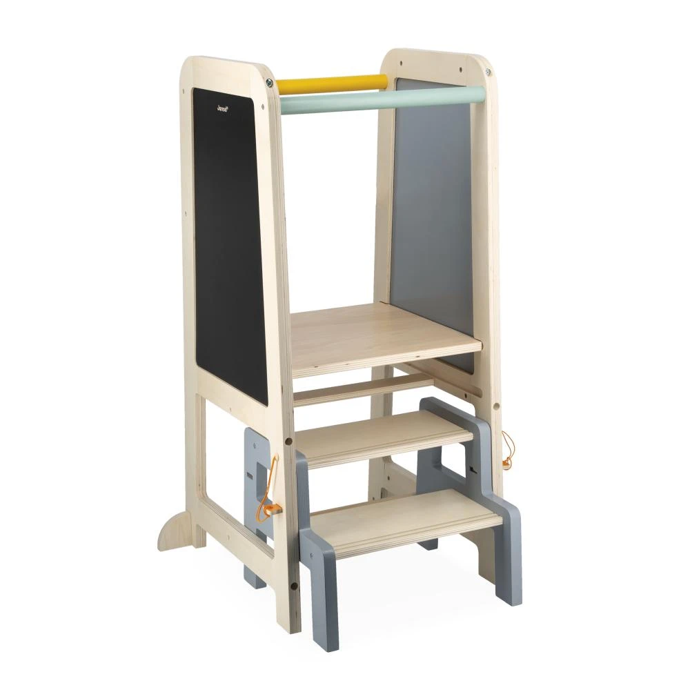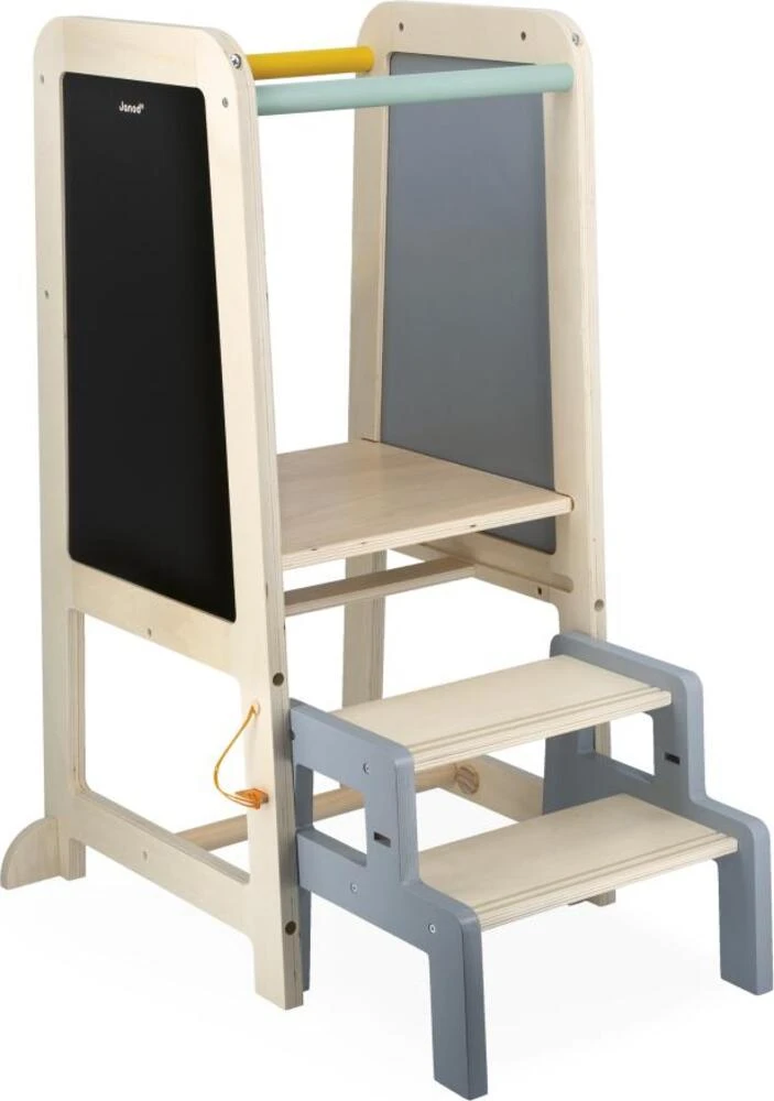 Drevená učiaca veža 3v1 so schodíkmi a tabuľou Janod