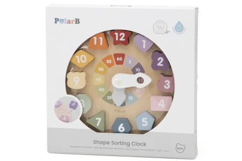 Tieto drevené hodiny sa vyznačujú jemnými farbami a kombinujú triedenie tvarov, porovnávanie farieb, rozpoznávanie čísel a učenie času v jednej zábavnej hračke.