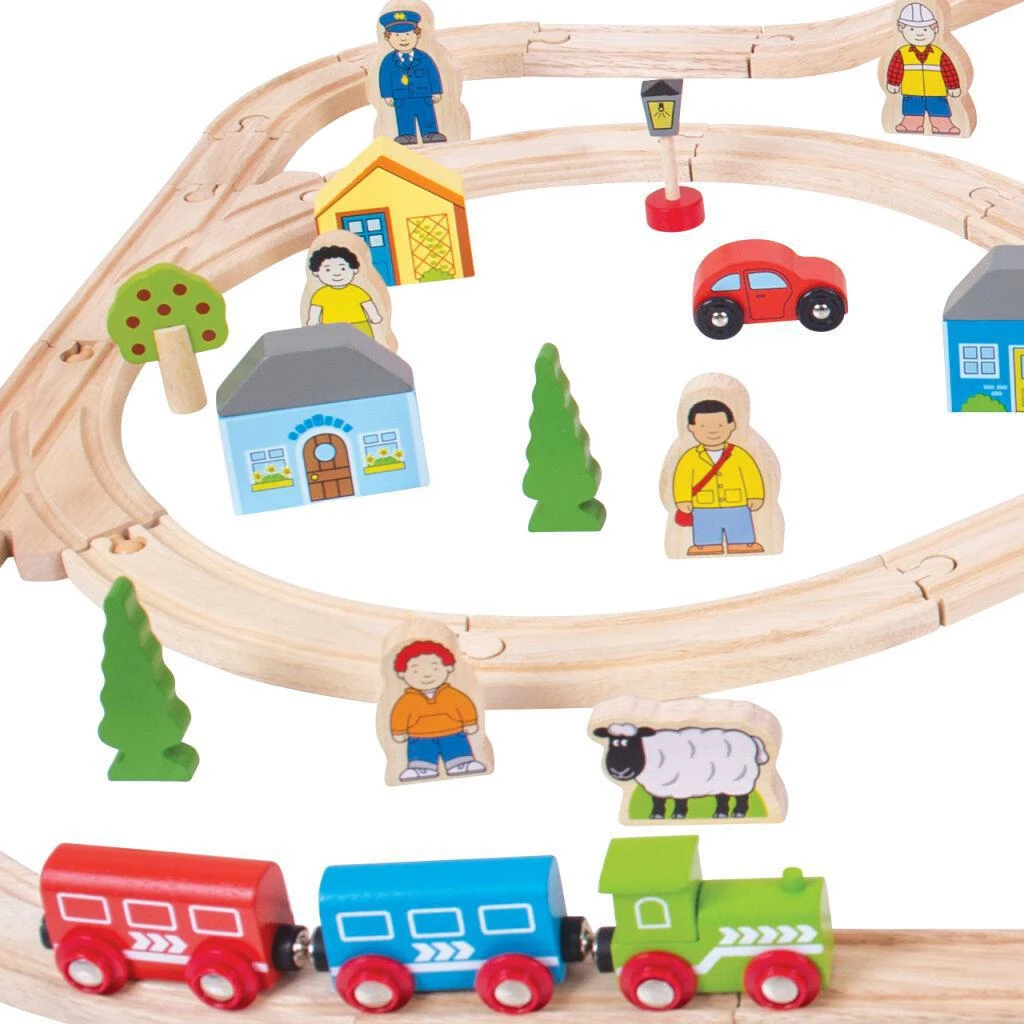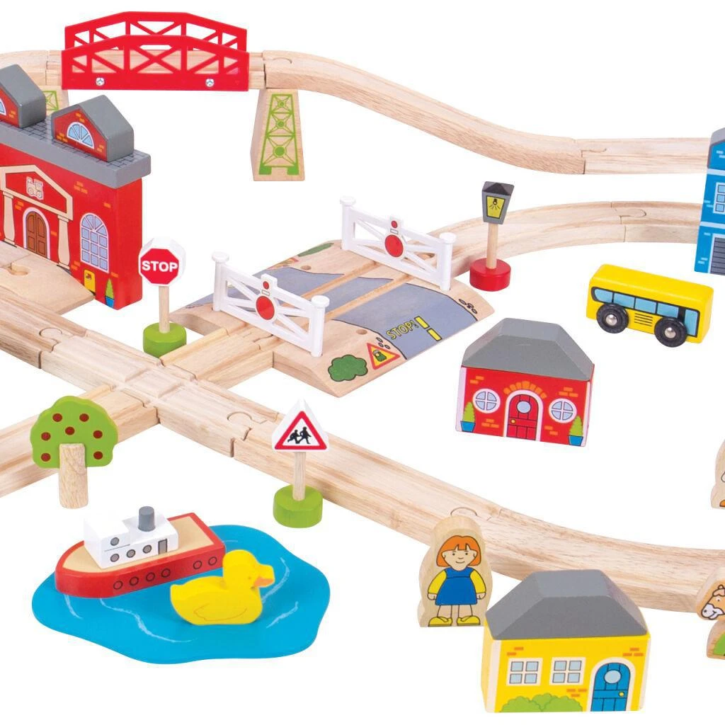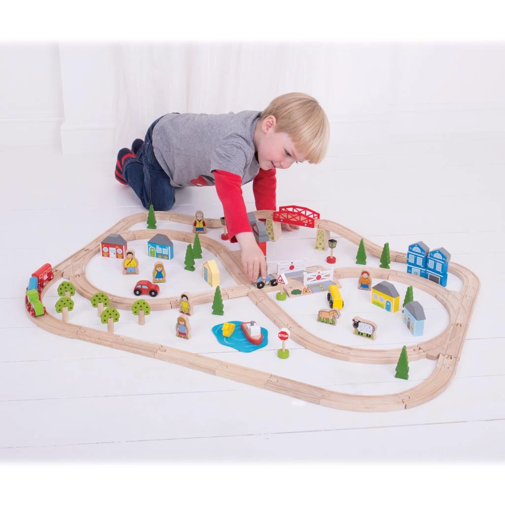 Drevená vláčikodráha mesto a dedina 91 dielov Bigjigs Rail