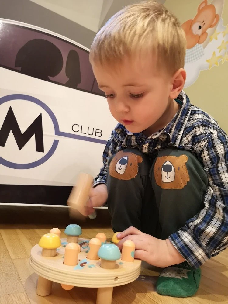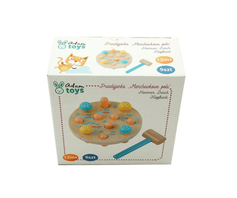 Drevená zatĺkačka „Mrkvové pole“ je zábavná a bezpečná hračka, ktorá rozvíja jemnú motoriku, koordináciu ruky a oka a ponúka deťom hodiny kreatívnej a aktívnej zábavy.