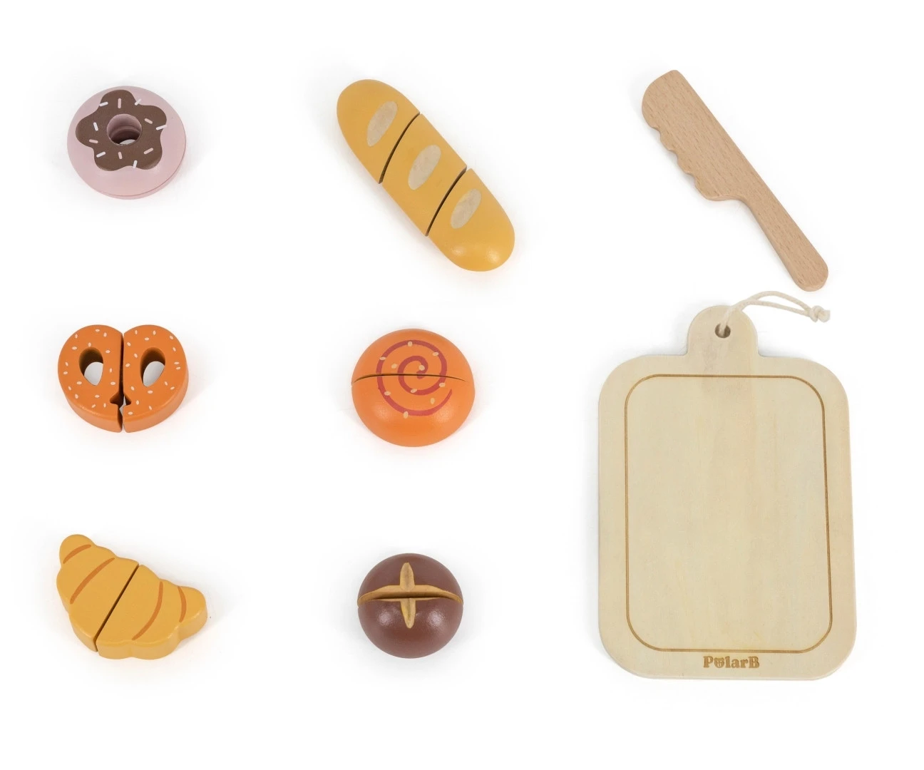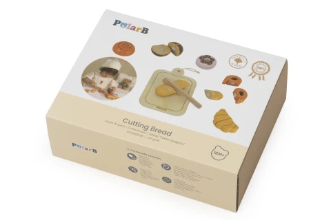 Drevená súprava na krájanie pečiva pre deti rozvíja kreativitu aj jemnú motoriku a prináša malým kuchárom bezpečnú, zábavnú a kvalitne spracovanú hračku.
