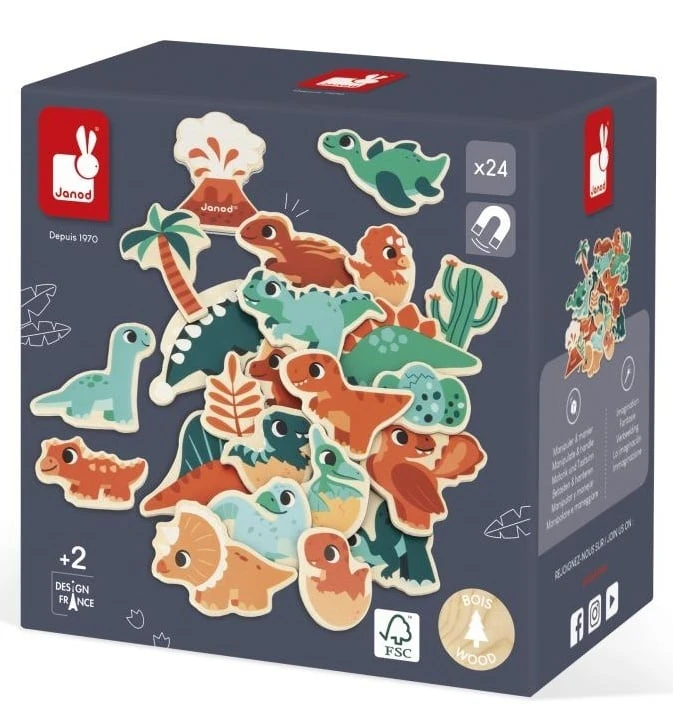Drevené magnetky Dinosaury Dino 24 ks Janod