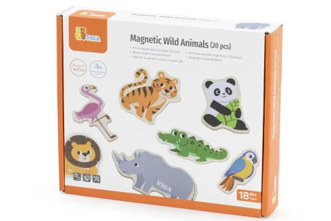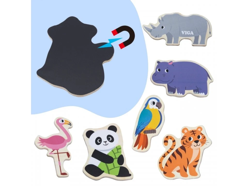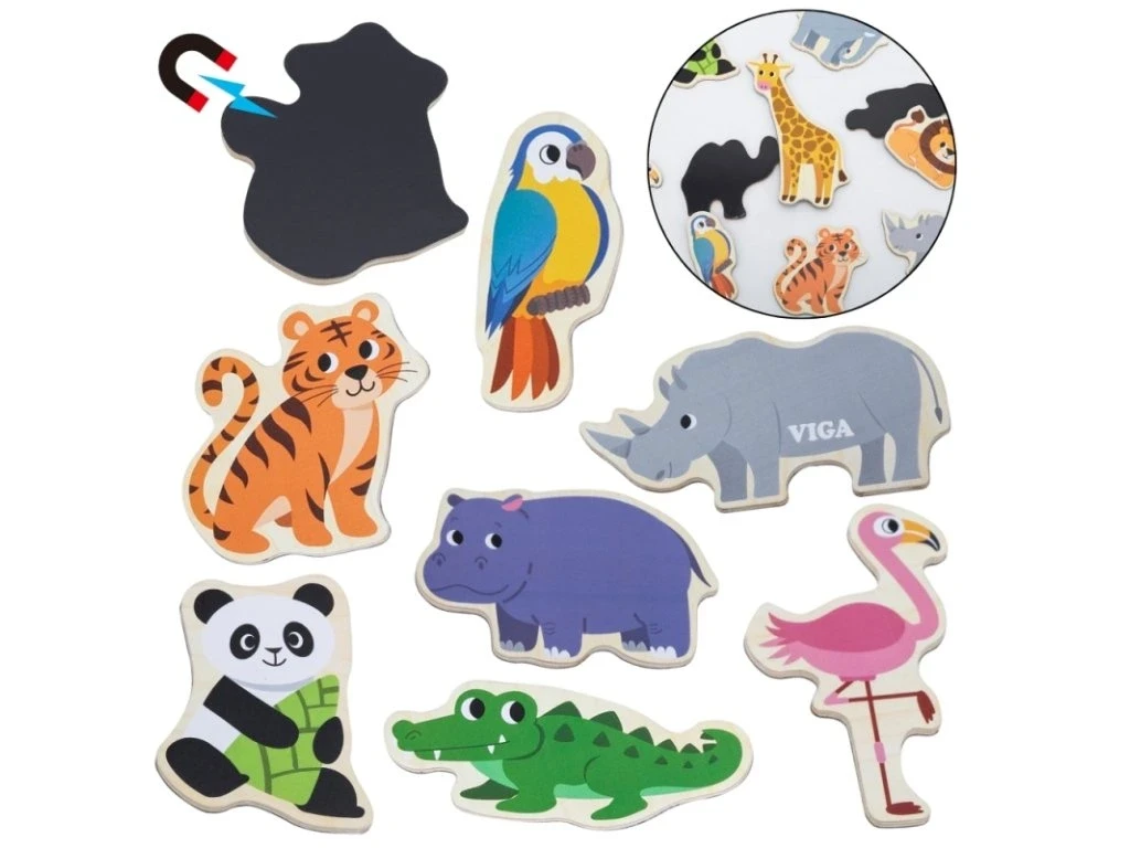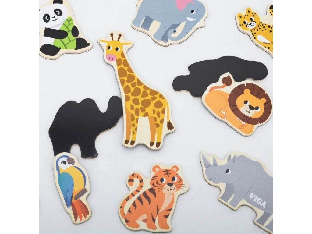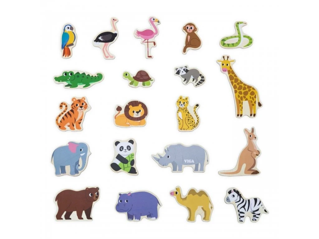 Drevené magnety 20 ks divé zvieratká Viga