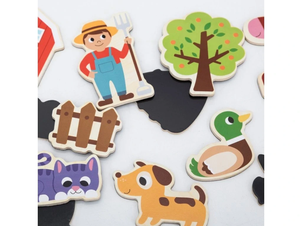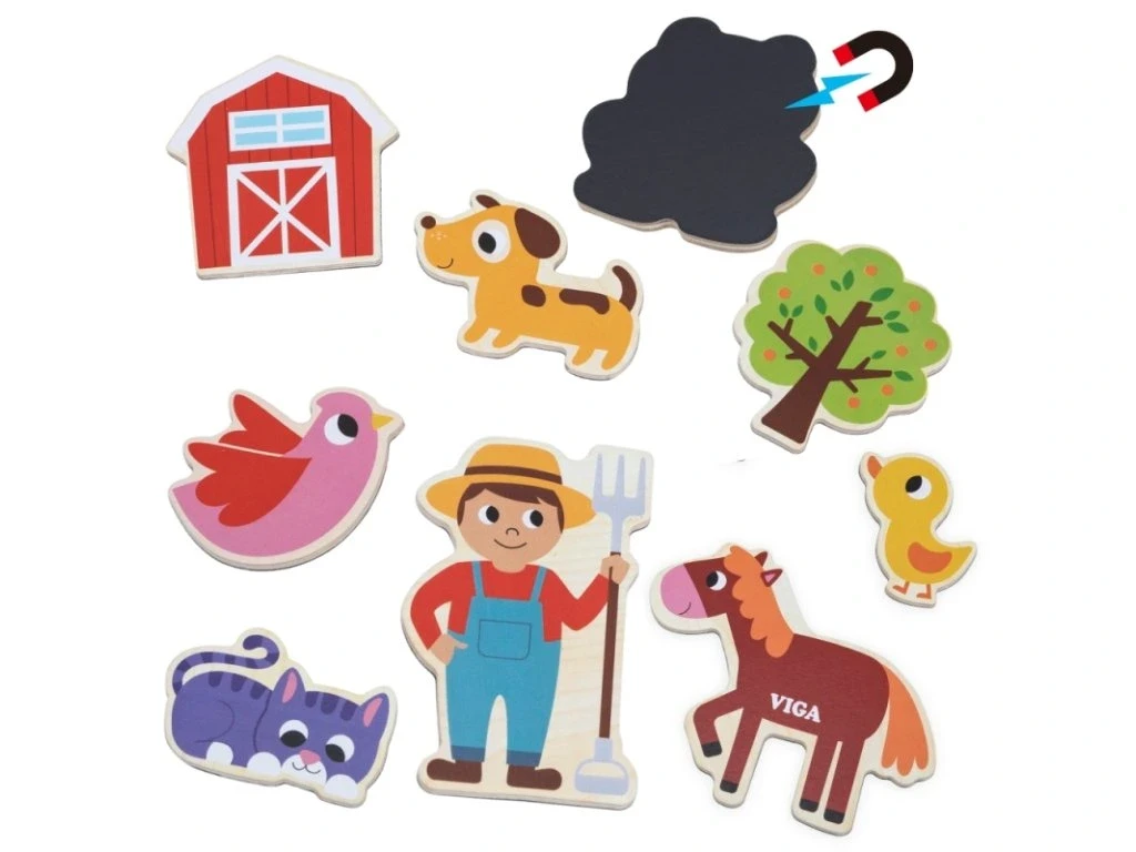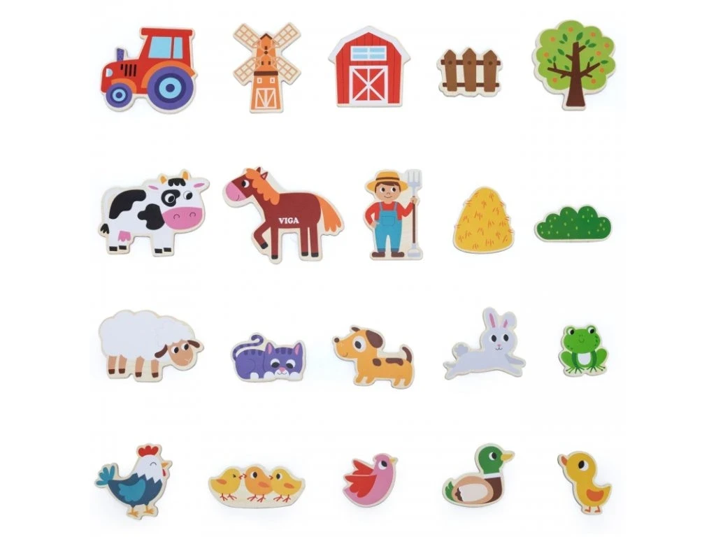 Drevené magnety 20 ks domáce zvieratká Viga
