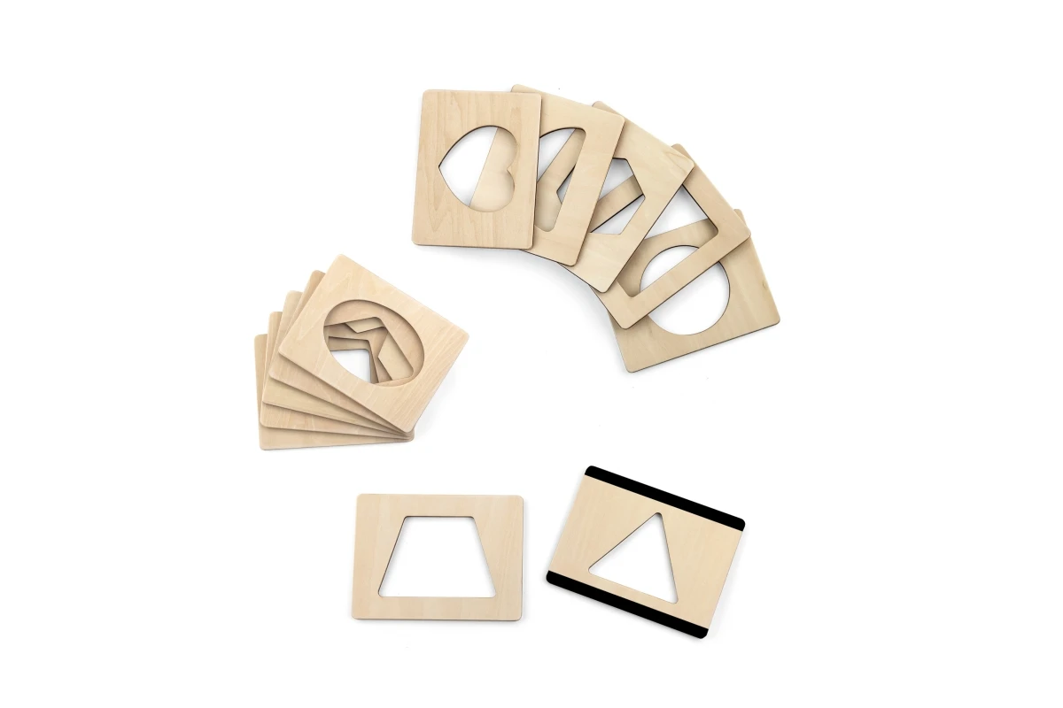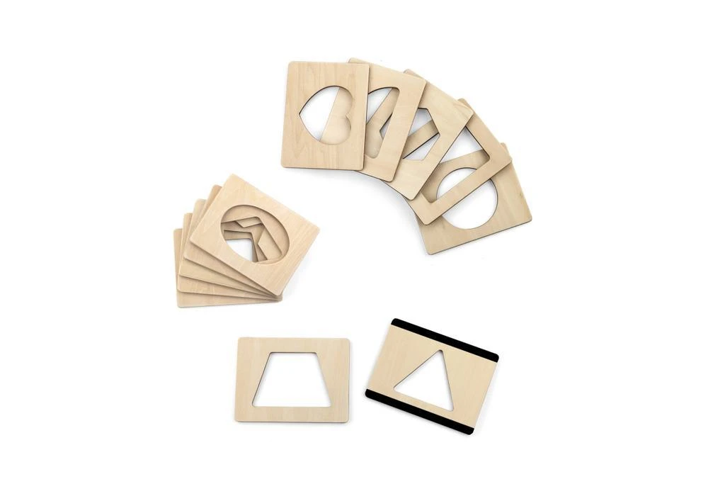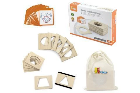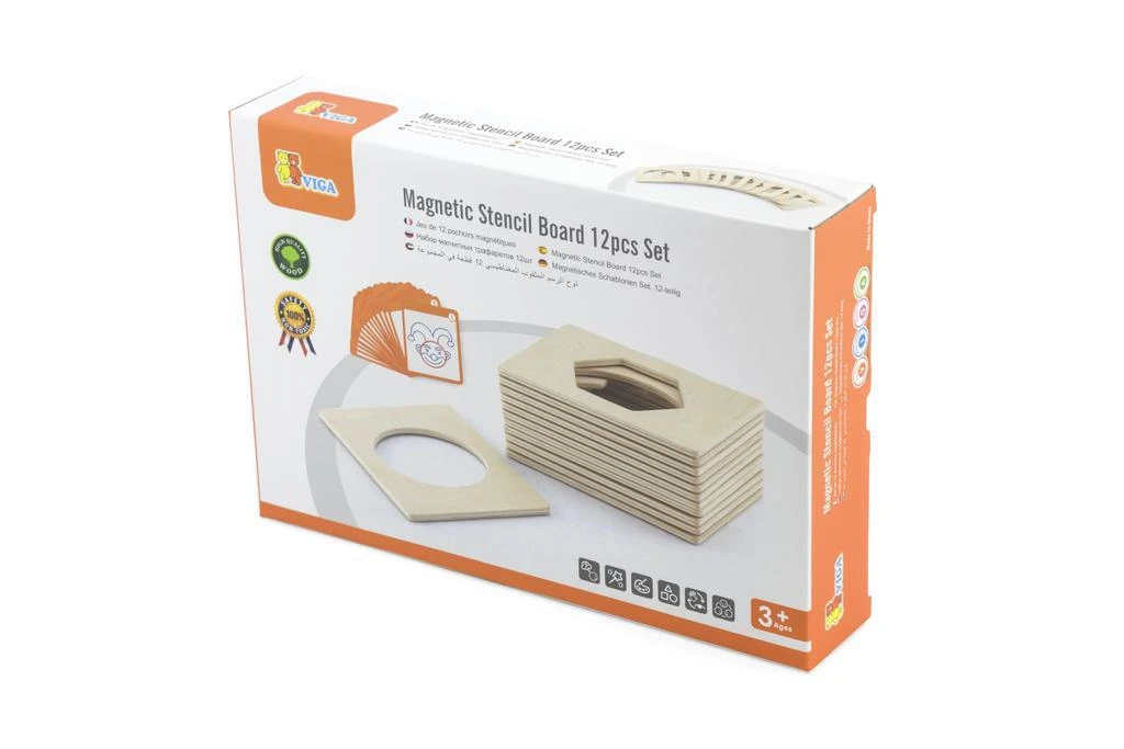 Drevené magnetické šablóny s tvarmi pre ľahšie učenie maľovania (12ks v balení).