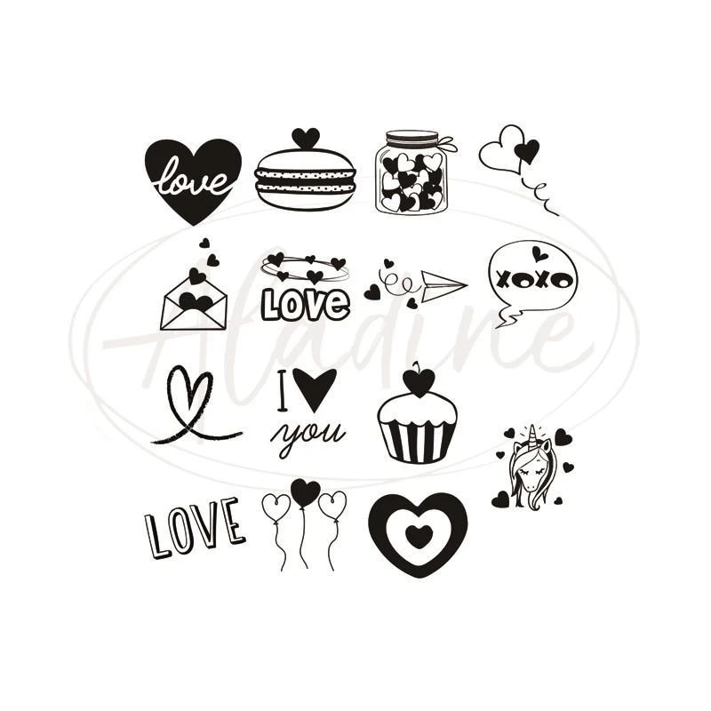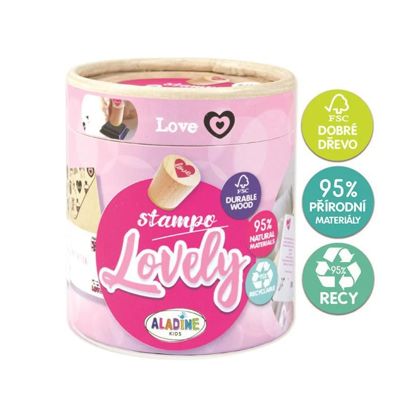 Drevené pečiatky Aladine Stampo LOVELY, 15 ks - Love