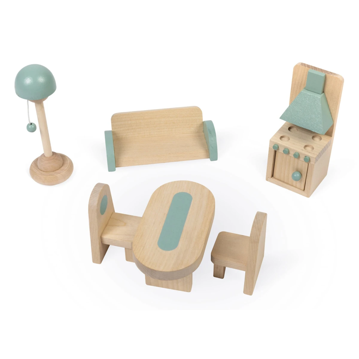 Drevený domček pre bábiky s rodinou a nábytkom Janod