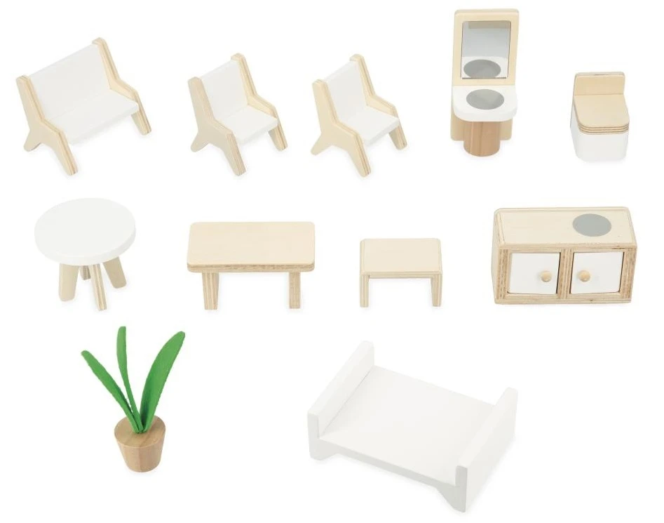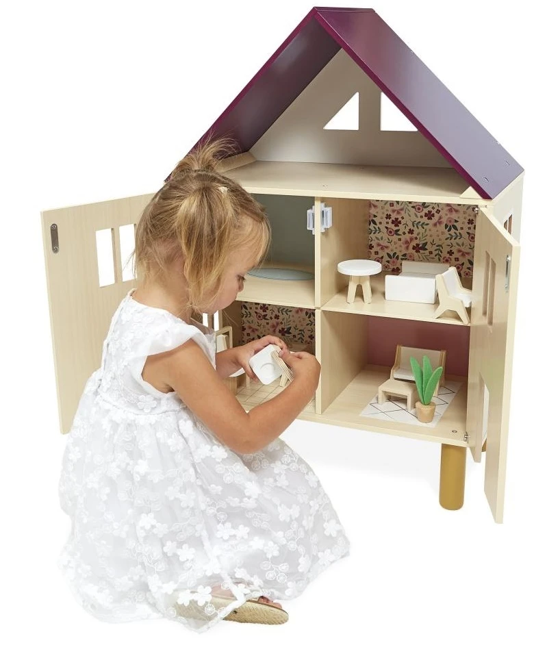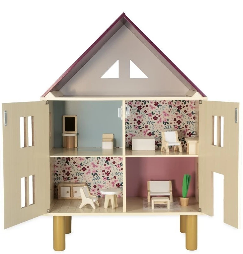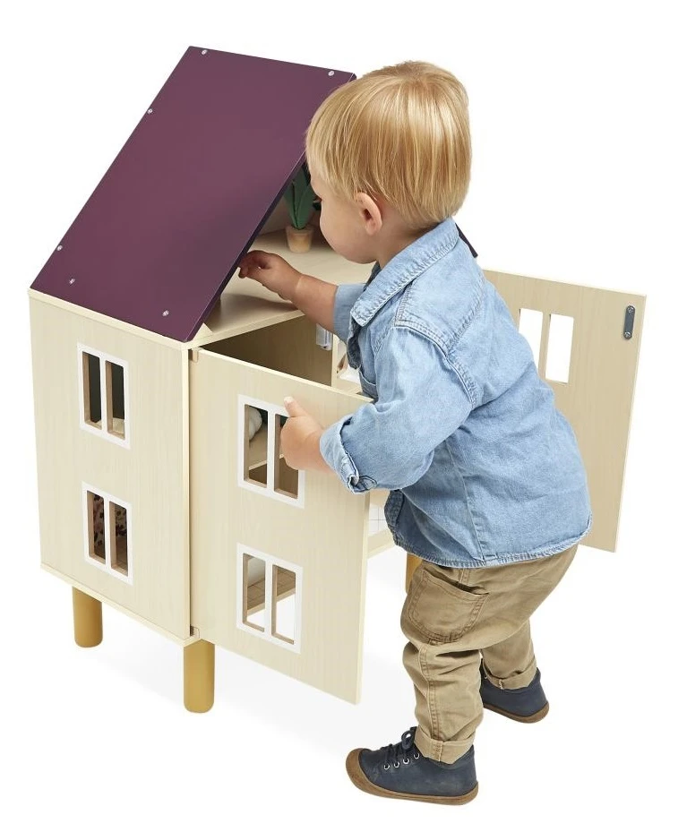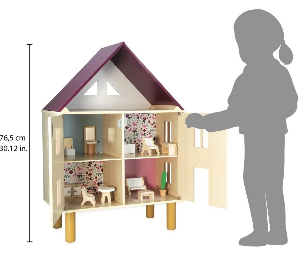 Domček má magnetické dvere, ktoré sa doširoka otvárajú na hranie a potom sa zatvárajú, aby sa všetko vo vnútri uložilo pre ľahkú prepravu. Hodiny hier a zdieľanie, ktoré vášmu dieťaťu umožnia rozvíjať predstavivosť a schopnosť socializácie. Hračka vyrobená z dreva FSCTM.