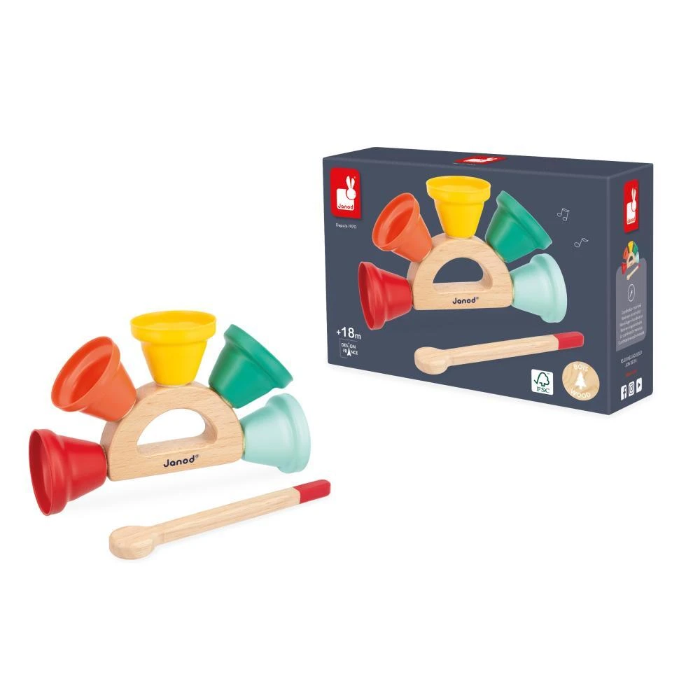 Táto ľahko uchopiteľná hračka pre deti ponúka zábavný úvod do zvukov. Farebné zvončeky stimulujú zrakovú ostrosť, ich zvuk podporuje hudobné povedomie a používaním prútika sa zlepšuje koordinácia pohybu. Každý zvonček vydáva iný zvuk, vďaka čomu môžu batoľatá objavovať nuansy zvuku a rozvíjať sluch pre hudbu.