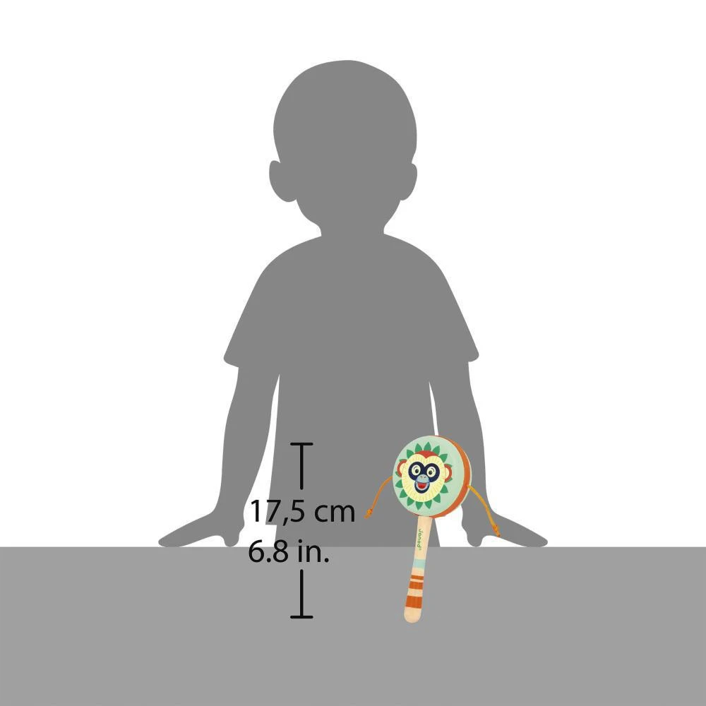 Vďaka drevenému ručnému bubienku si deti môžu vymýšľať vlastné melódie a napodobňovať dospelých so svojim vlastným nástrojom. S dĺžkou 17,5 cm sa dobre drží a je veľmi ľahko ovládateľný aj pre tých najmenších.