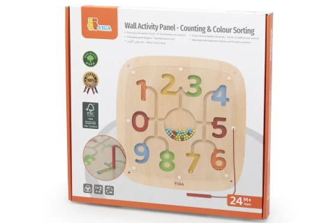 Drevený nástenný panel - počítanie a farby. Tento nástenný panel s aktivitami premení rozpoznávanie farieb a čísel na praktické dobrodružstvo.